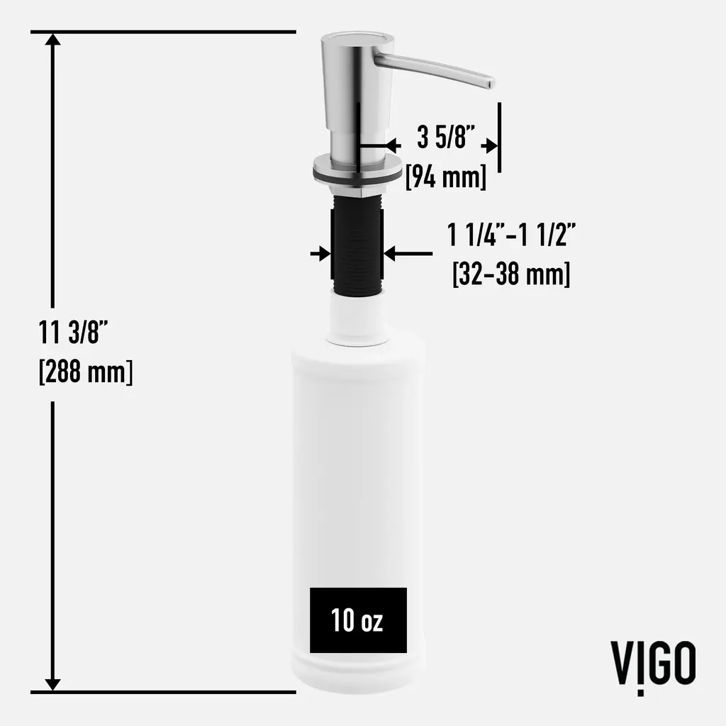 Add a sophisticated touch to your modern kitchen upgrade with the VIGO kitchen soap dispenser. Designed for mounting with a pump above the counter and a reservoir below, which can easily be refilled from the top for added convenience. Works great with hand soap, dish soap, or hand lotion for your household needs.