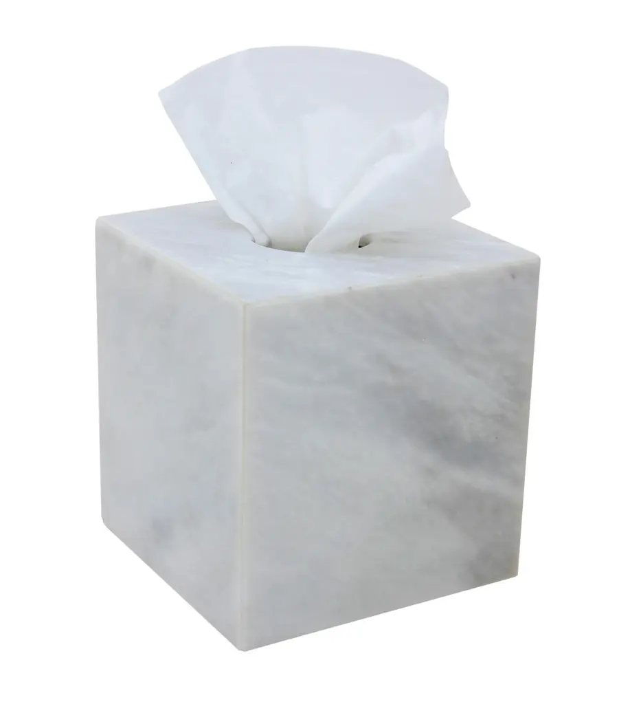 A Myrtus Collection Pearl White Marble Tissue Box Holder.