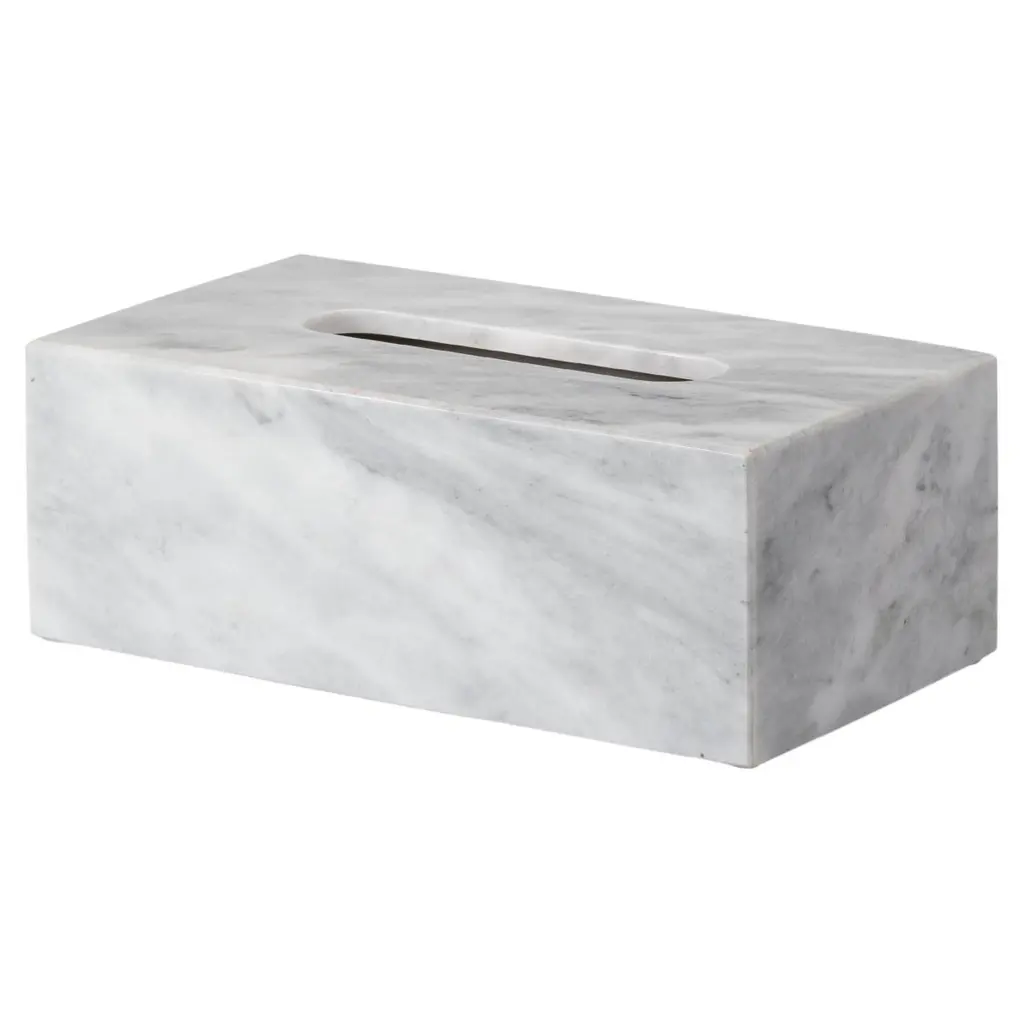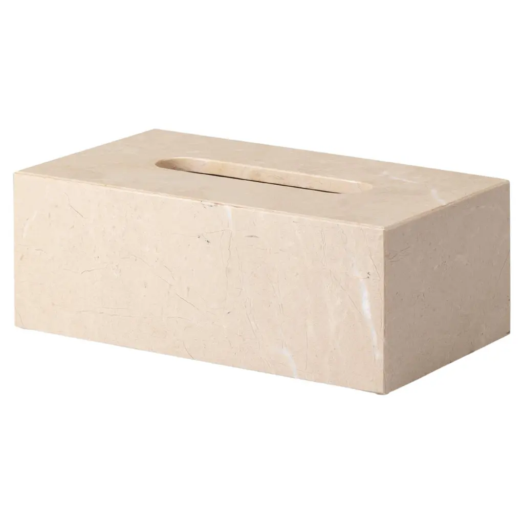 Crafted entirely by hand, this marble tissue box cover is a fusion of form and function, seamlessly blending into any space while adding sophistication and elegance. Clean, minimalist lines highlight the natural veining of the marble, making each piece truly unique. Designed to accommodate most standard paper tissue boxes available worldwide, this tissue box cover offers versatility and practicality alongside its exquisite craftsmanship.