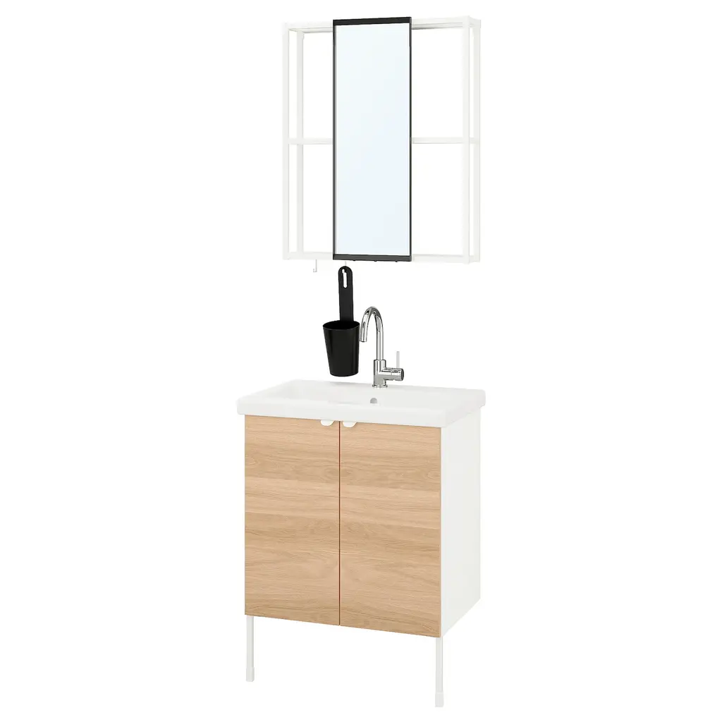 ENHET Bathroom - white/oak effect 24x18x24 ". Good sense and feel in beautiful partnership. The foil surface resists moisture, scratches and bumps, while the wood pattern creates a lively and warm expression. With a mirror attached to the wall frame, it is easier to prepare for the day ahead.