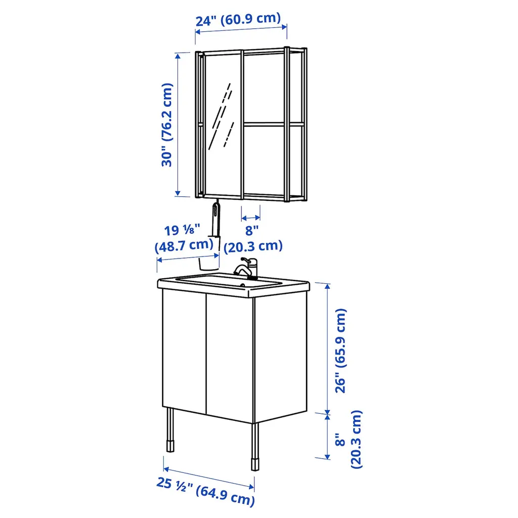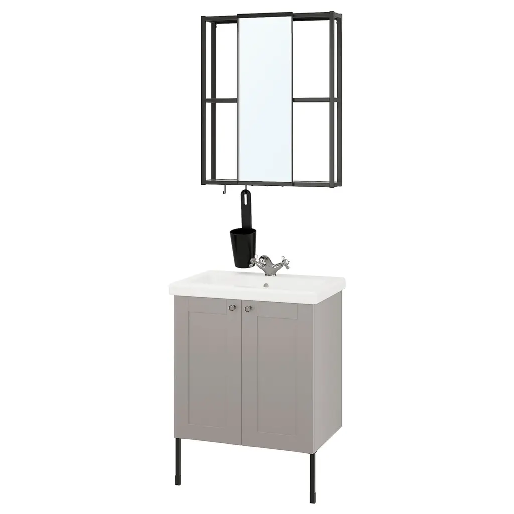 ENHET Bathroom - anthracite/gray frame 24x18x24 ". With grey as a base, you create a warm and cozy feeling. Perfect if you want a discreet color that goes with everything. Modern or classic – you decide the style. With a mirror attached to the wall frame, it is easier to prepare for the day ahead.