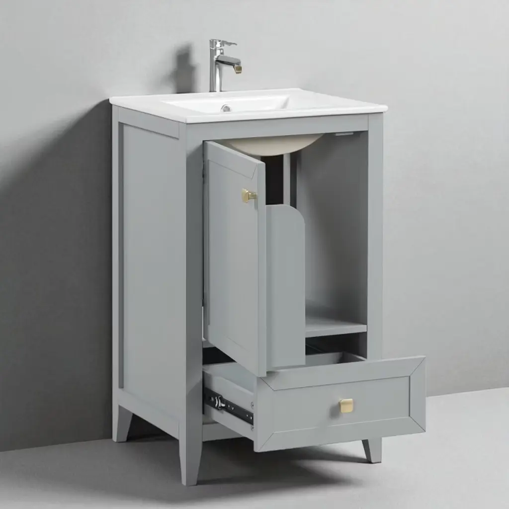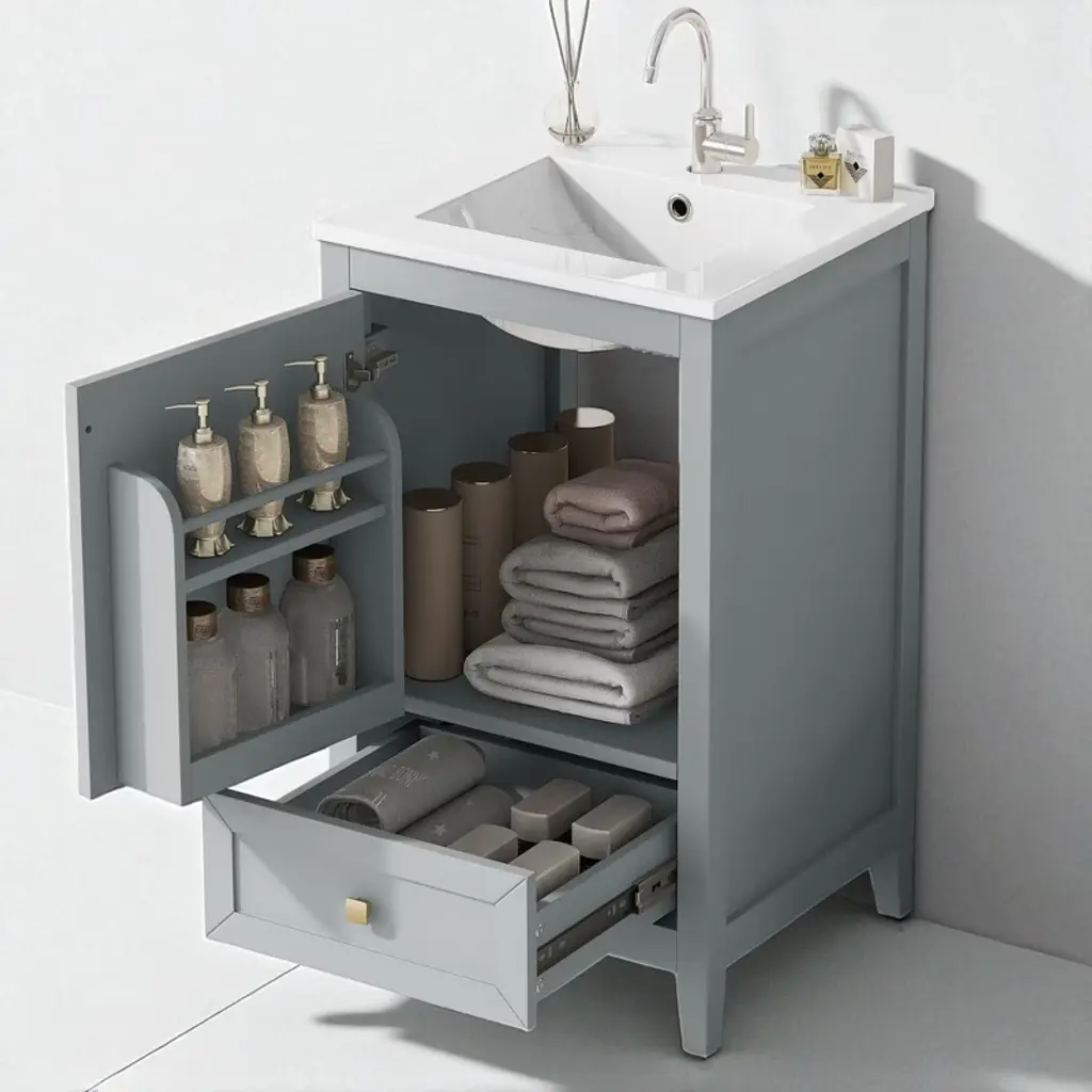 20" Bathroom Vanity With Ceramic Sink, Soft-close Door, Storage Rack, Drawer, Freestanding Mdf Cabinet