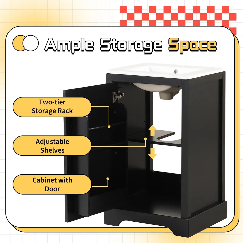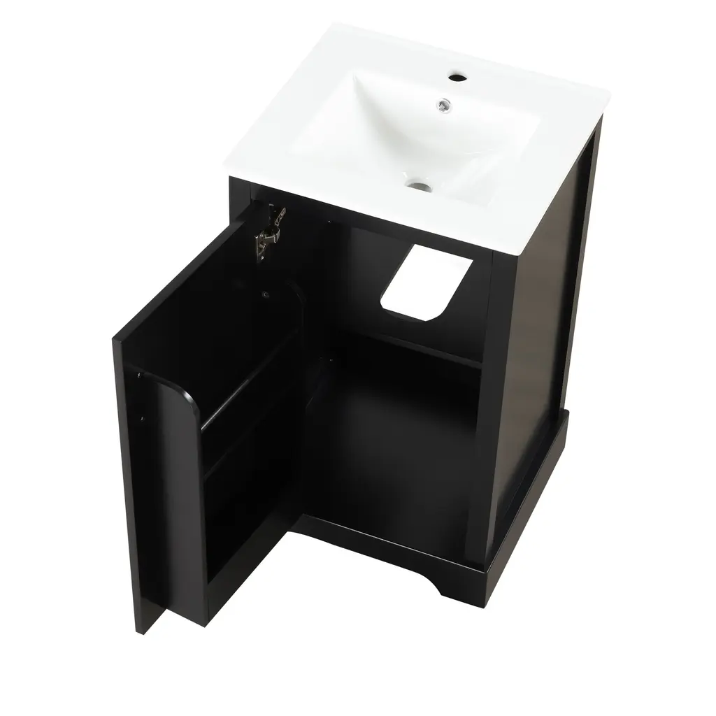 20" Bathroom Vanity With Sink, Bathroom Cabinet With Soft Closing Door, Storage Rack And Adjustable Shelve - Black