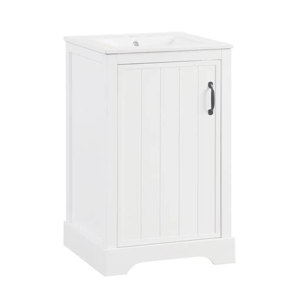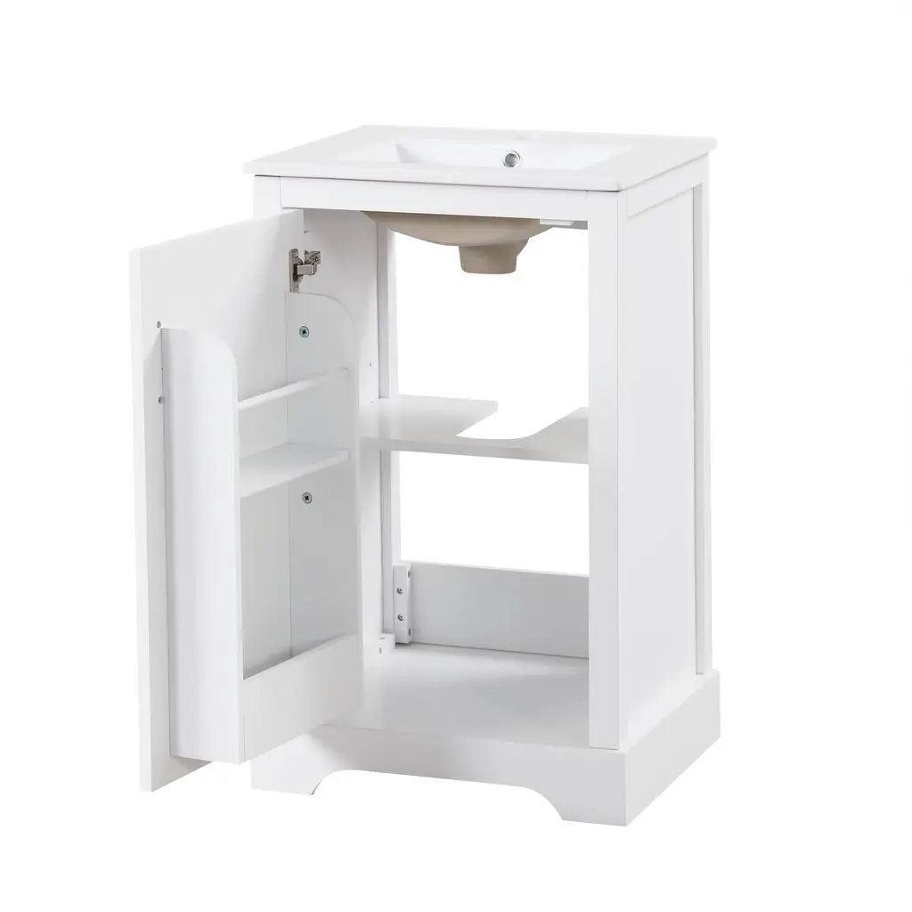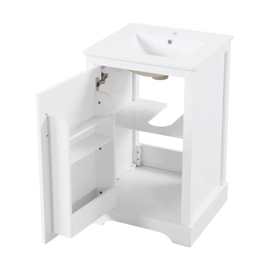 20" Bathroom Vanity With Sink, Bathroom Cabinet With Soft Closing Door, Storage Rack And Adjustable Shelve - White