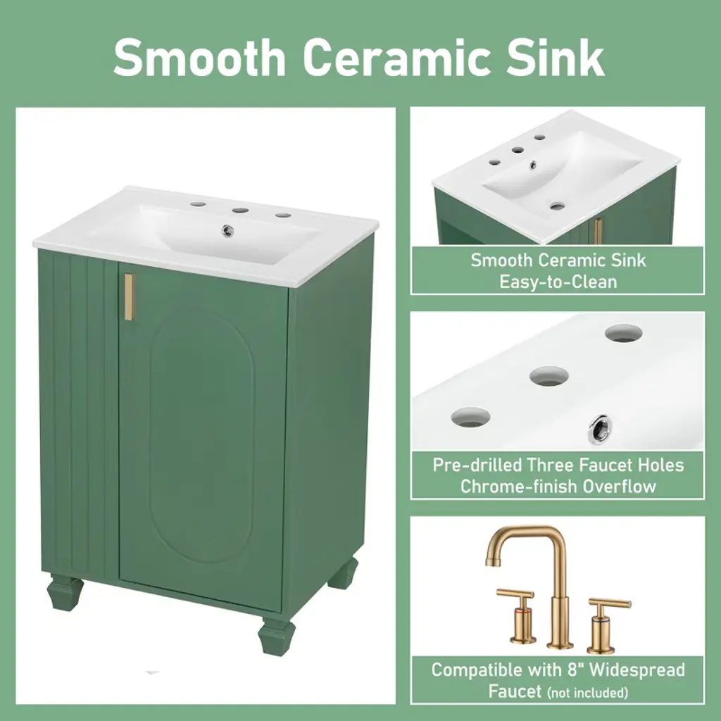 24" Bathroom Vanity With Sink Combo, Free-standing Single Storage Cabinet W/soft Closing Door, Open Side Shelves, Depth Bathroom Vanities, Green