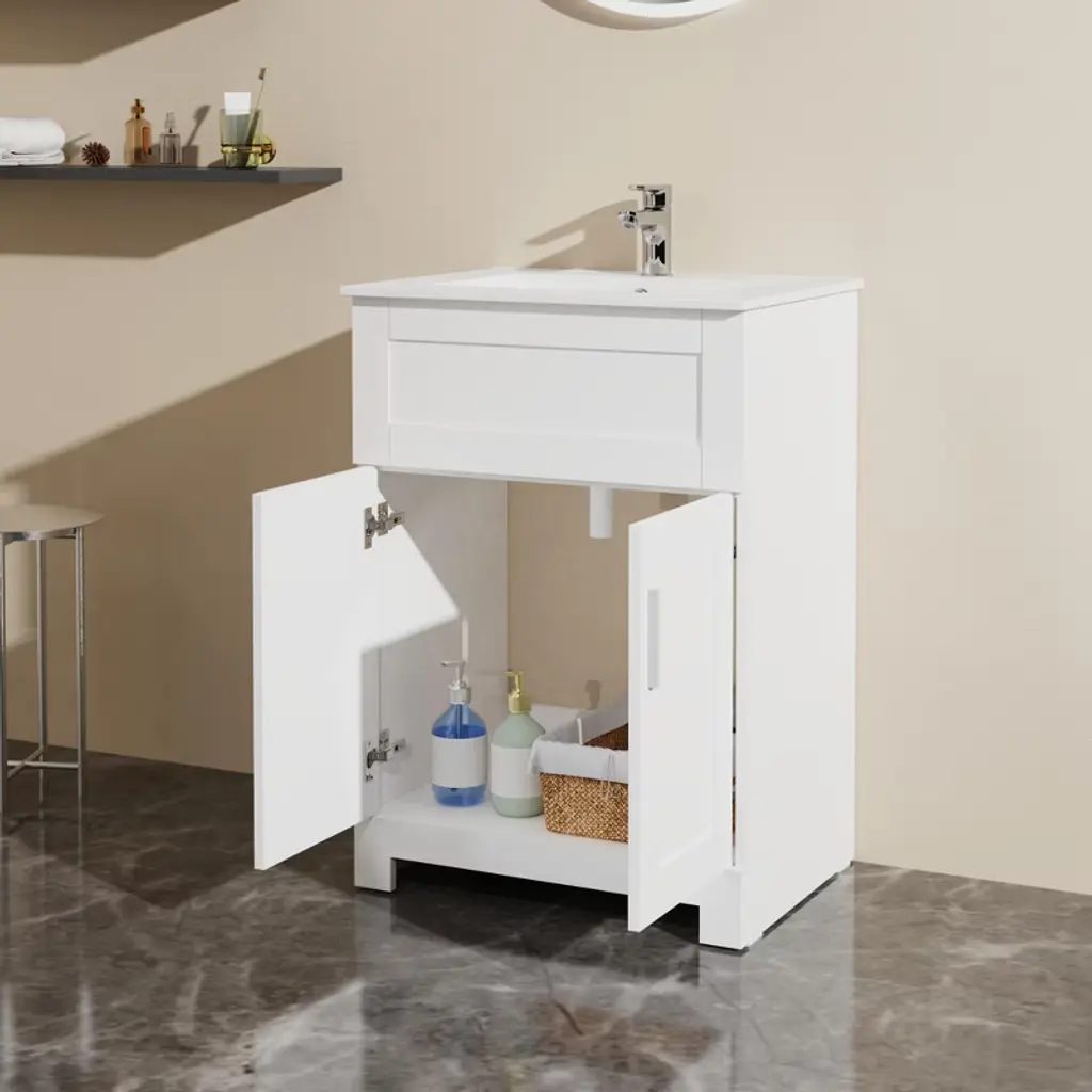 24" Sink Bathroom Vanity Laundry Cabinet Combo, White