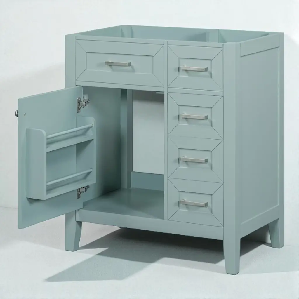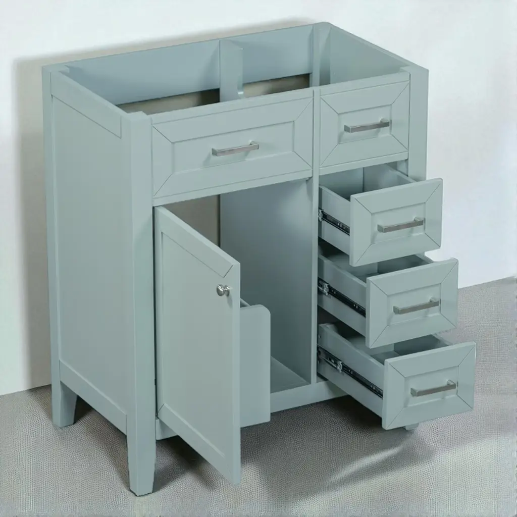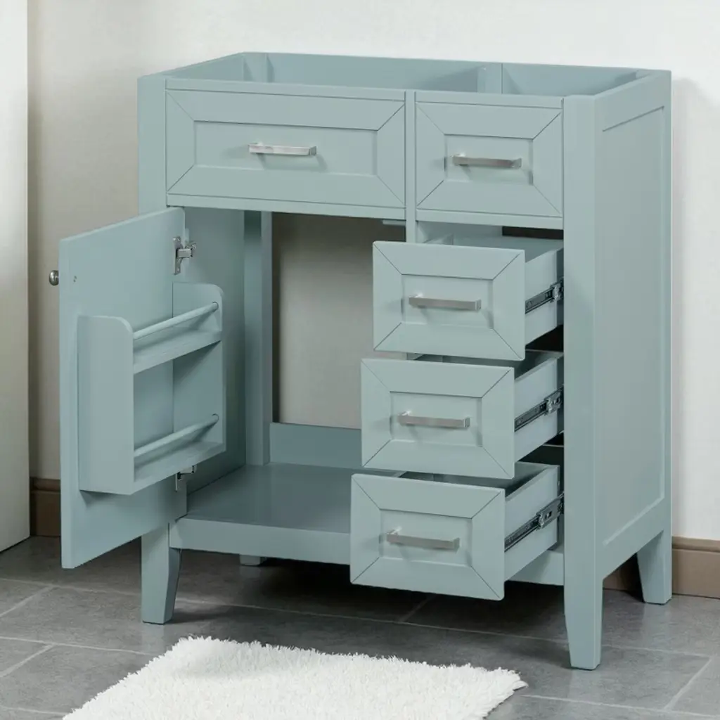 30" Bathroom Vanity Base Only, Freestanding Cabinet With 1 Door & 3 Drawers, Solid Wood & Mdf, Sink Not Included
