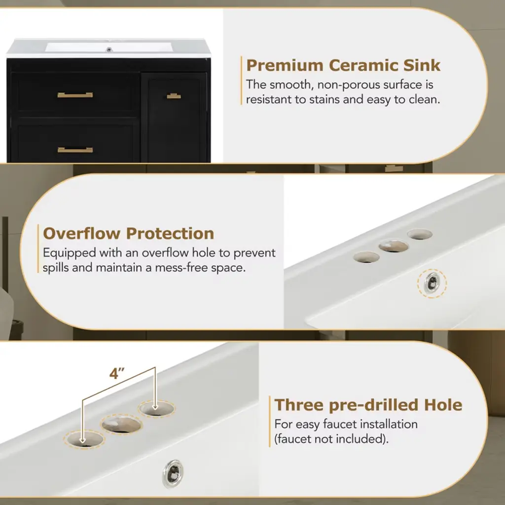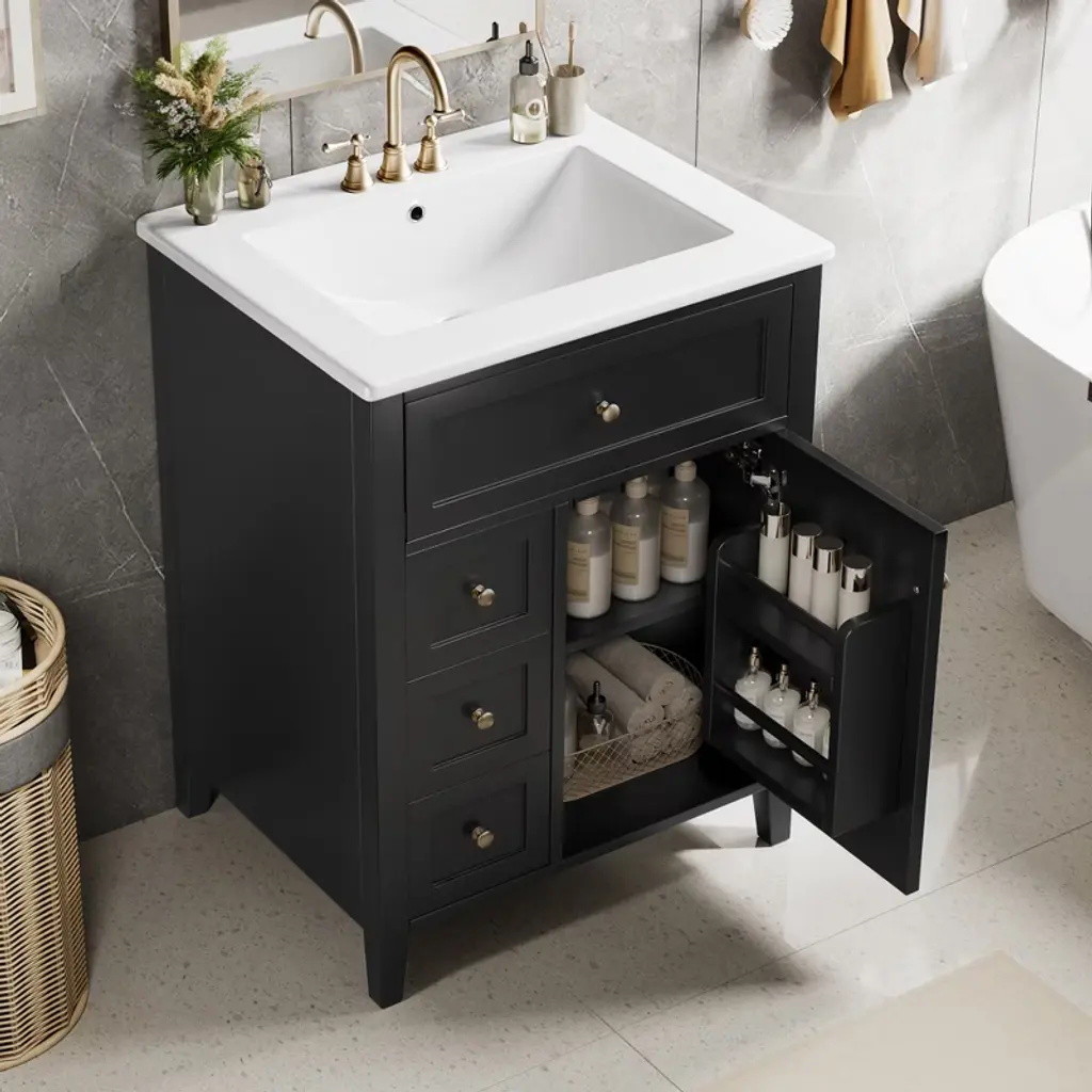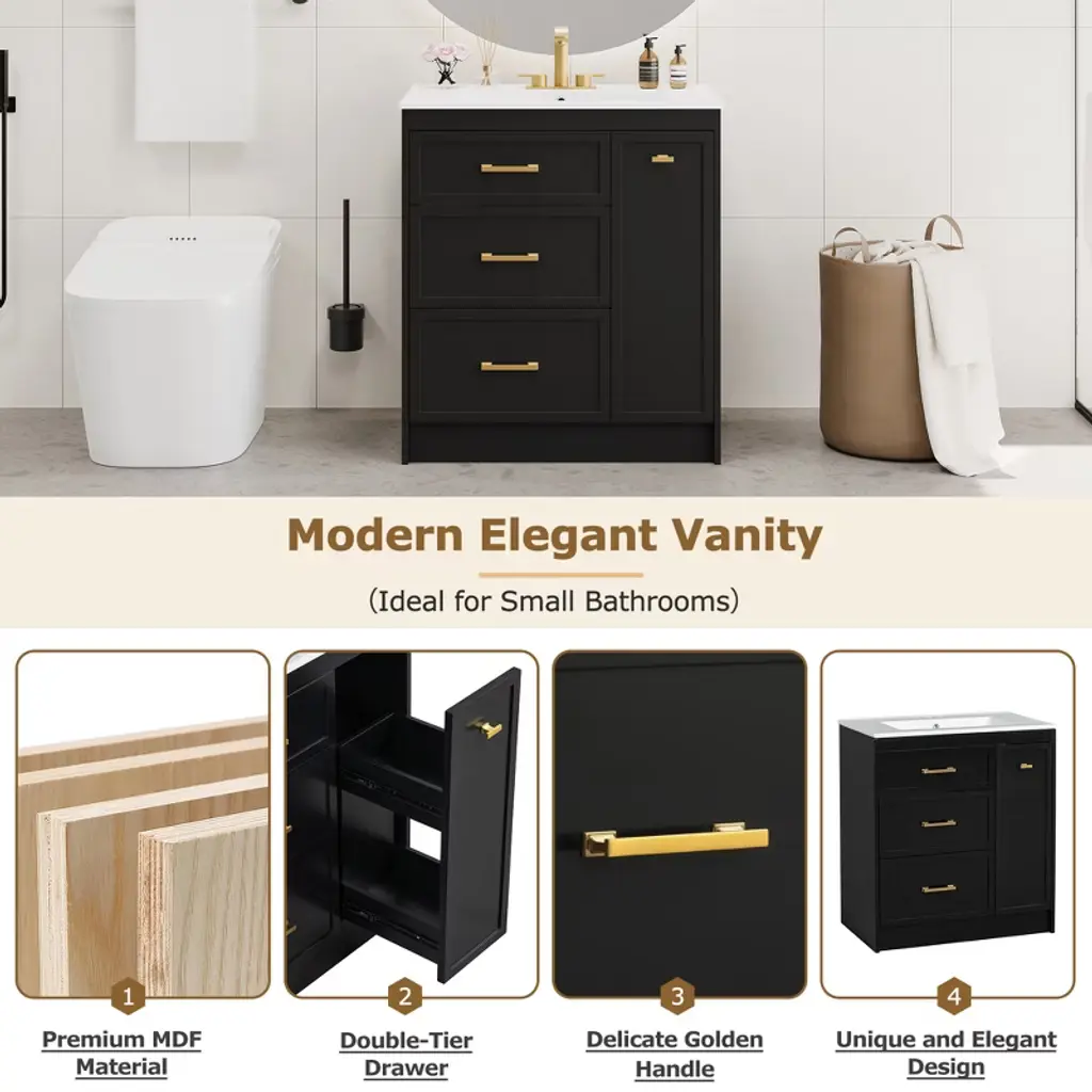 30" Bathroom Vanity Set, Classic Floor Standing, With Two Drawers & A Double-layer Drawer Black