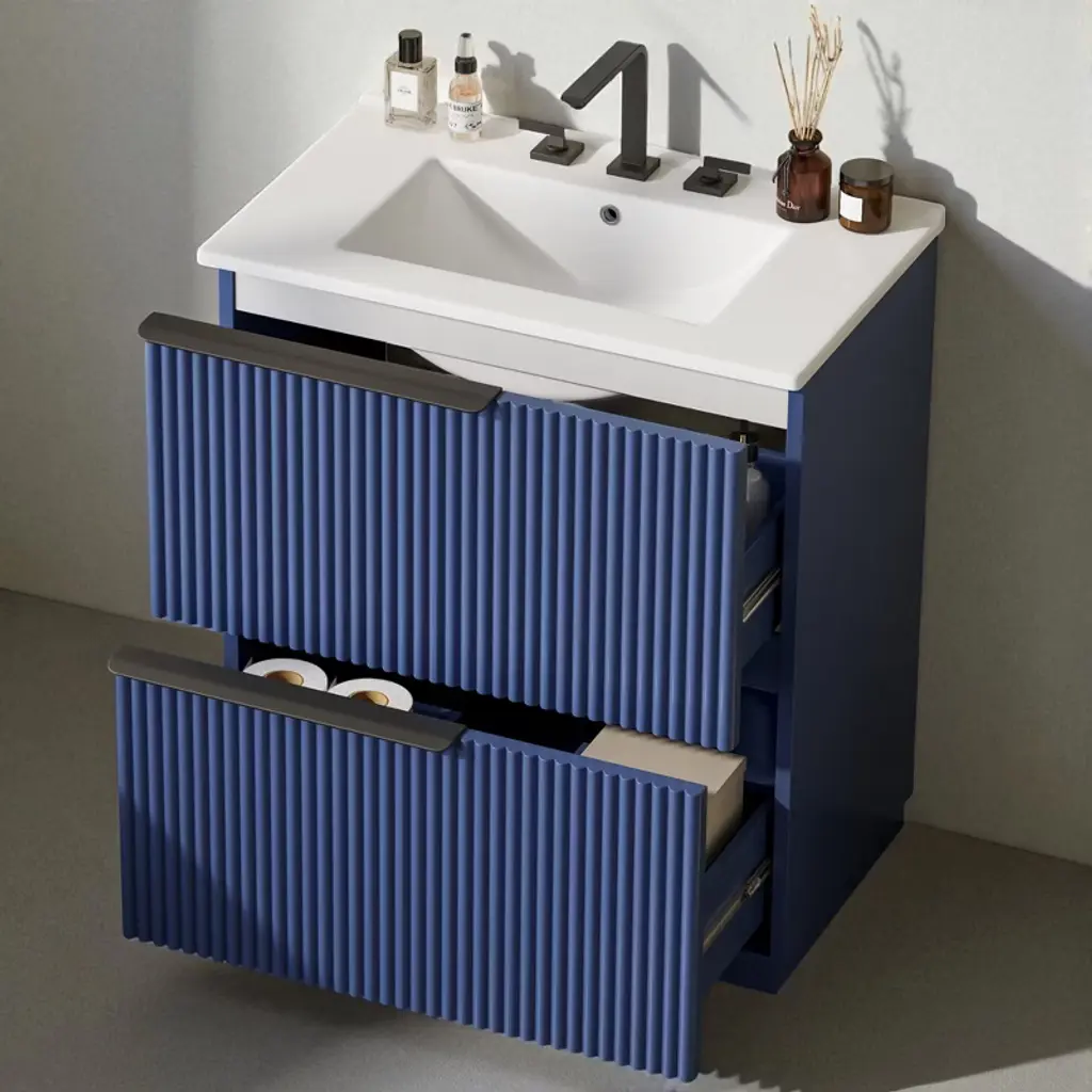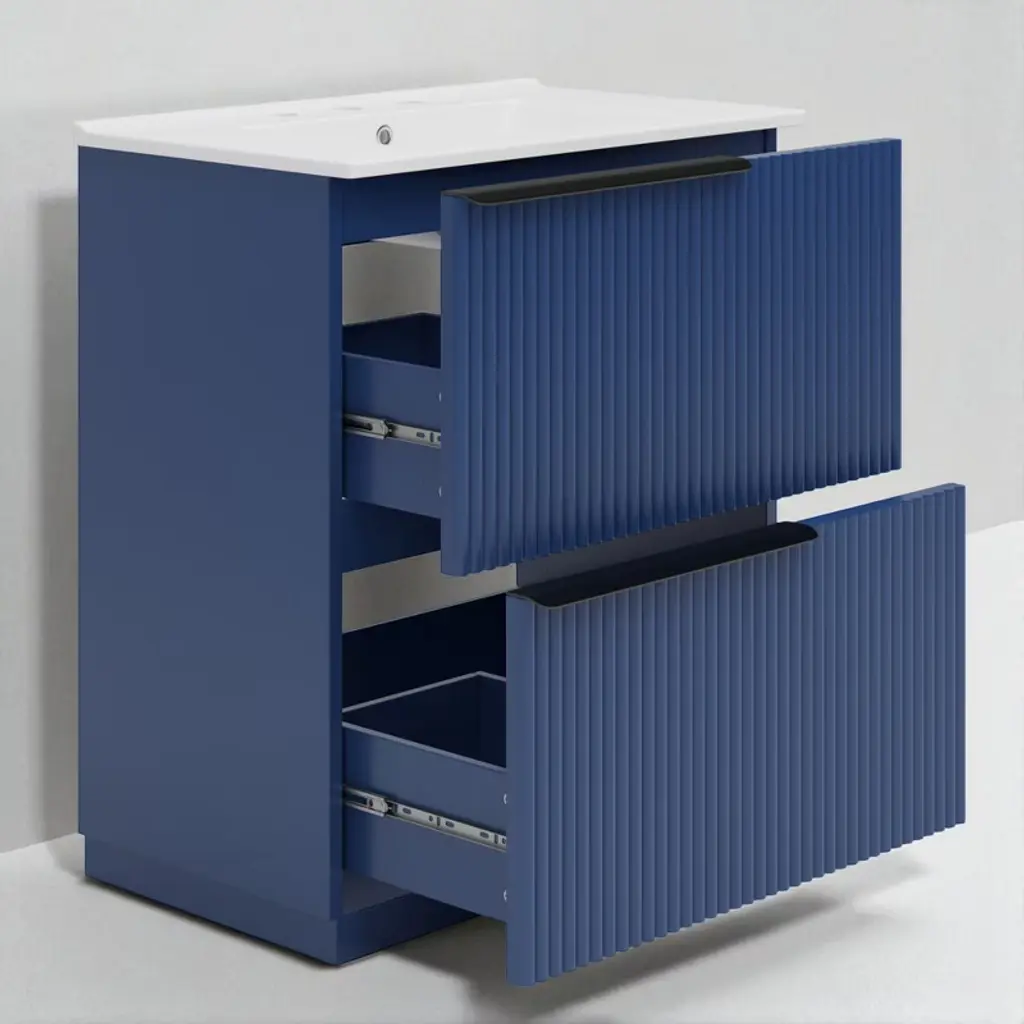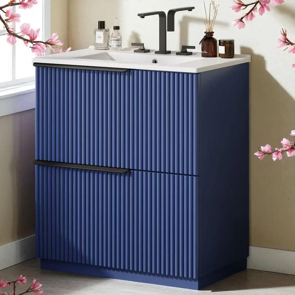 30" Bathroom Vanity With Ceramic Sink Basin, Fluted Design, Full-extension Soft-close Drawers, Moisture-proof Structure