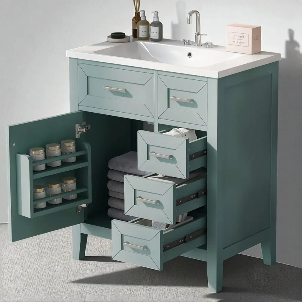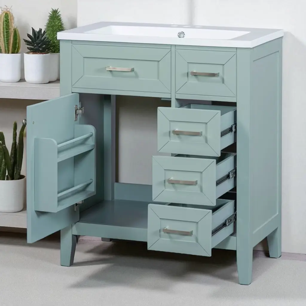 30" Bathroom Vanity With Ceramic Sink, Freestanding Cabinet With 1 Door & 3 Drawers, Solid Wood & Mdf Construction
