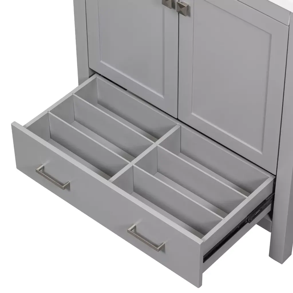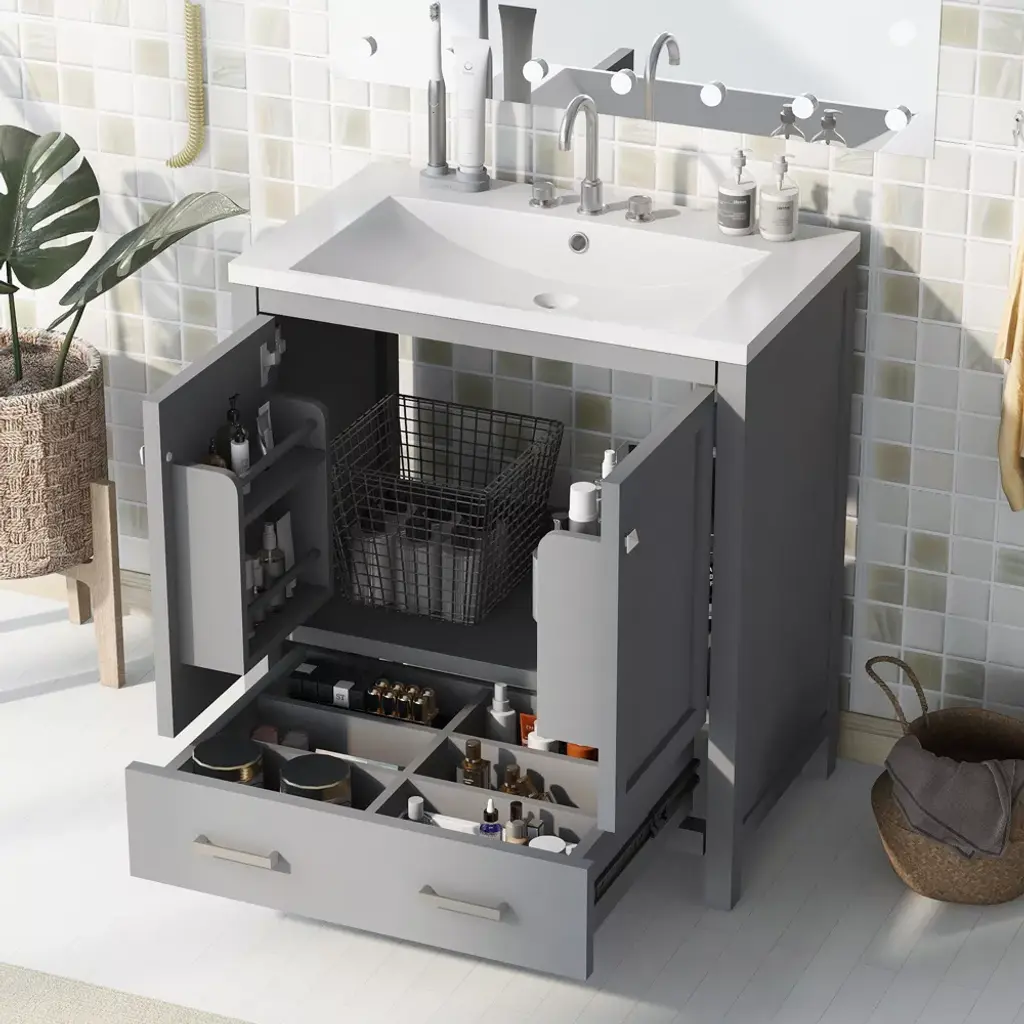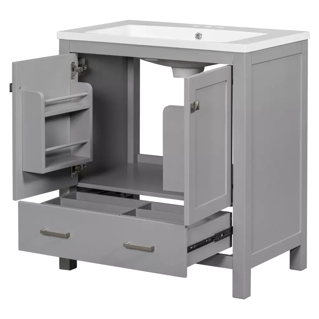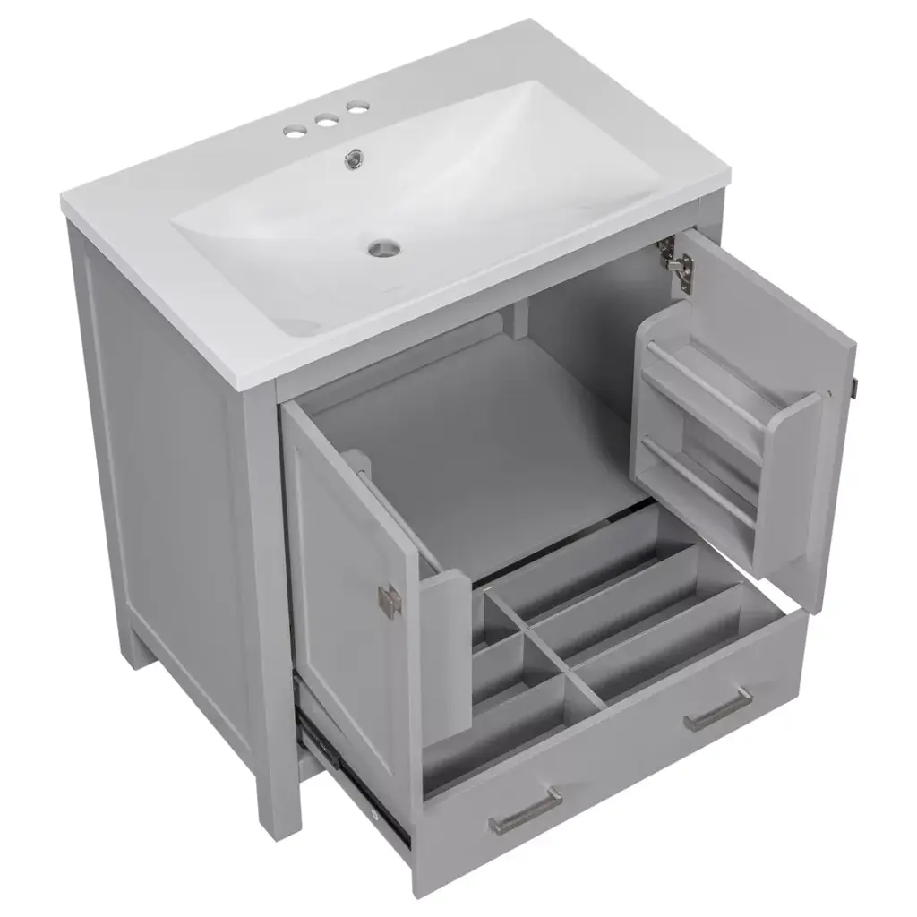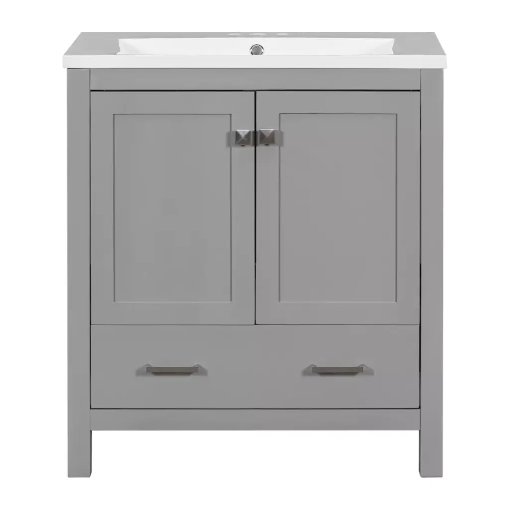 30" Gray Bathroom Vanity With Single Sink, 2 Doors And 1 Drawer - Modernluxe