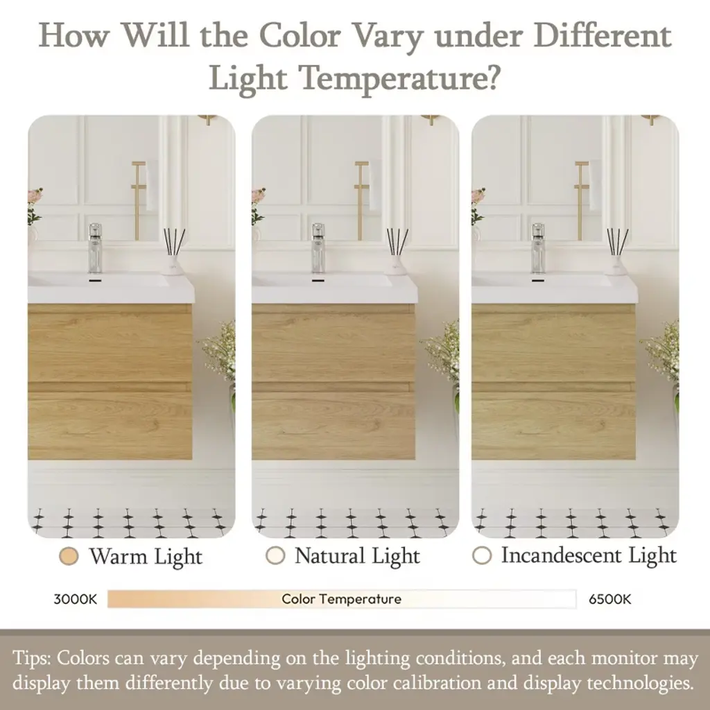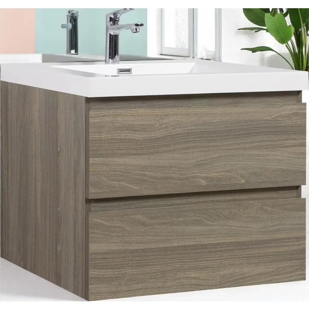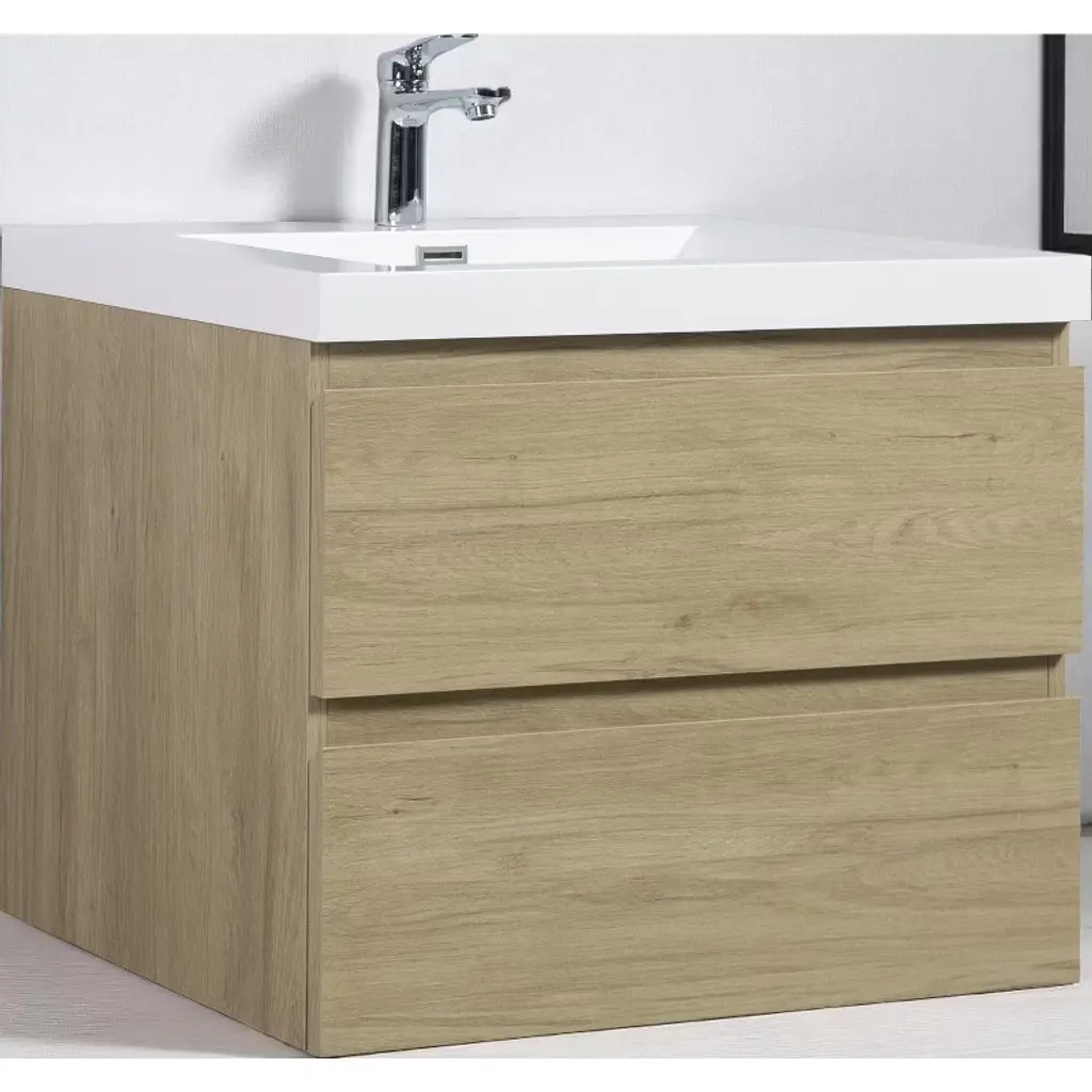 Product OverviewRefresh your bathroom with this 30-inch wall-mounted vanity that delivers both contemporary style and efficient functionality. Designed to maximize space while enhancing visual appeal, this modern floating cabinet features a glossy white resin sink, water-resistant finish, and soft-close hinges. Ideal for smaller spaces or those seeking a sleek and clean design, this vanity offers the perfect combination of form and practicality.Product FeaturesClean and Functional Design: This compact floating vanity is perfect for organizing toiletries and cosmetics. Its minimalist silhouette complements a wide range of bathroom interiors while freeing up floor space for a clean and open look.Glossy Resin Countertop: The integrated one-piece sink is made of high-quality resin, offering a durable, non-porous surface that is easy to clean and resistant to yellowing. It supports standard 1-3/8"" single-hole faucets and 1-3/4"" pop-up drains (faucet and drain not included).Easy to Install: Designed with an open back for straightforward plumbing access, this vanity arrives with pre-drilled components, making assembly quick and simple—typically under 30 minutes.Durable and Water-Resistant: Crafted from premium engineered wood with a protective, water-resistant finish, this vanity is built to withstand daily moisture exposure. Soft-close hinges ensure smooth, silent operation for a more refined bathroom experience.SpecificationsAssembled Dimensions: 29.53"" L x 19.69"" W x 22.44"" HTotal Weight: 102.1 lbsMaterial: High-quality engineered woodCountertop Material: Glossy resinMounting Type: Wall-mountedSink Type: Integrated resin sinkFaucet Compatibility: 1-3/8"" single-hole (not included)Drain Compatibility: 1-3/4"" pop-up drain (not included)Assembly: Required, with pre-drilled parts and clear instructionsSuitable ScenariosIdeal for small bathrooms, powder rooms, apartments, or modern minimalist interiorsGreat choice for renovations or upgrading to a sleek, space-saving designNotesFaucet and drain assembly are not included with this vanity.Color may vary slightly depending on lighting or monitor settings.Assembly required; installation recommended with two people.