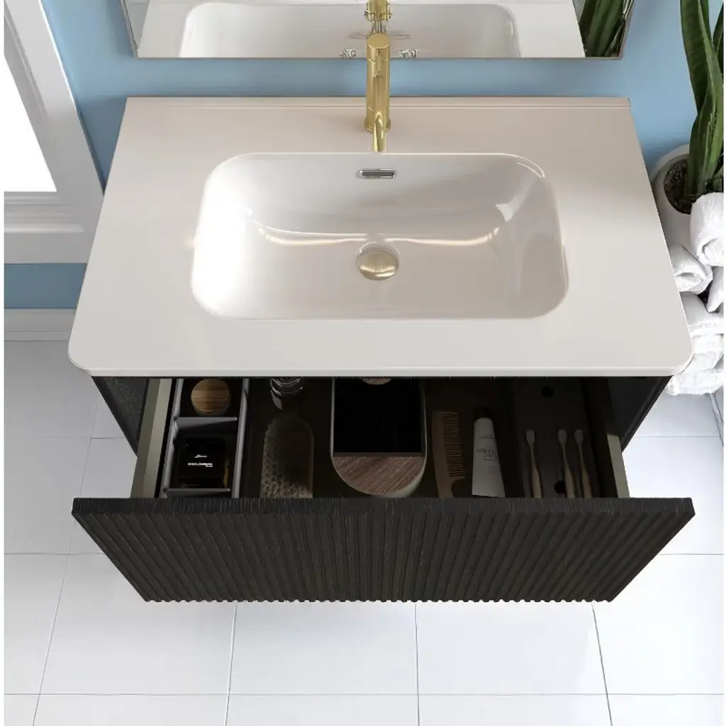 30" Wall-mounted Floating Bathroom Vanity With Striped White Texture, Glossy White Integrated Ceramic Sink, Push-open Drawer