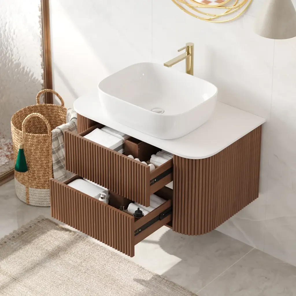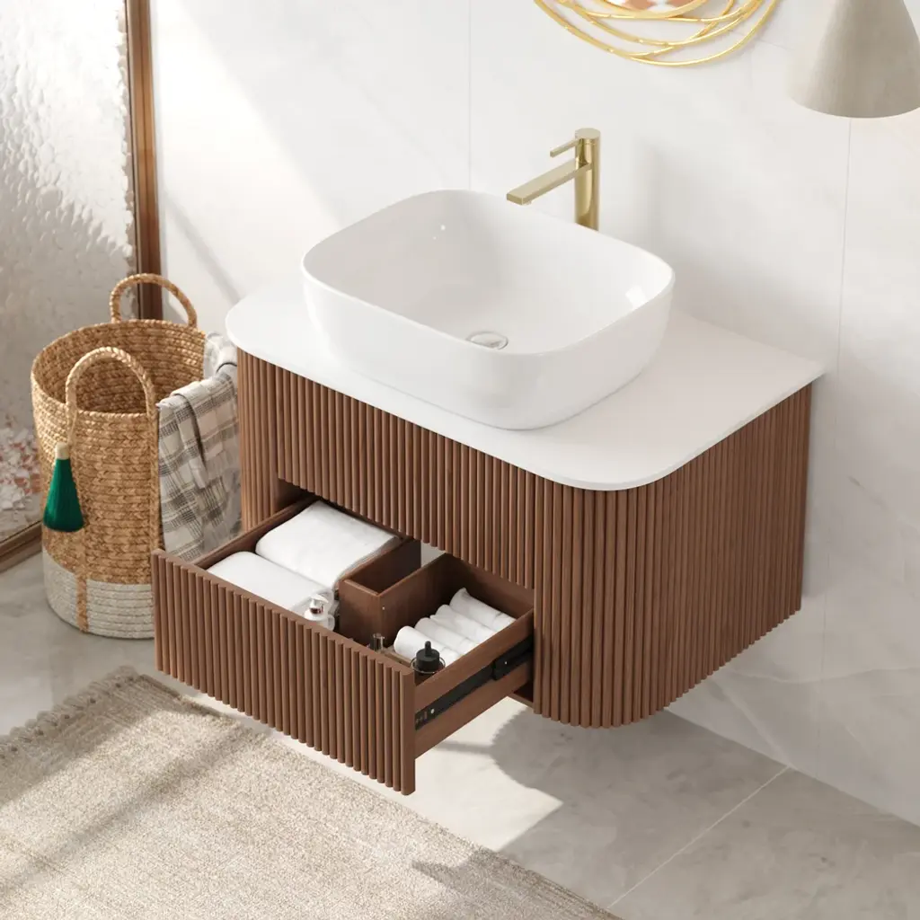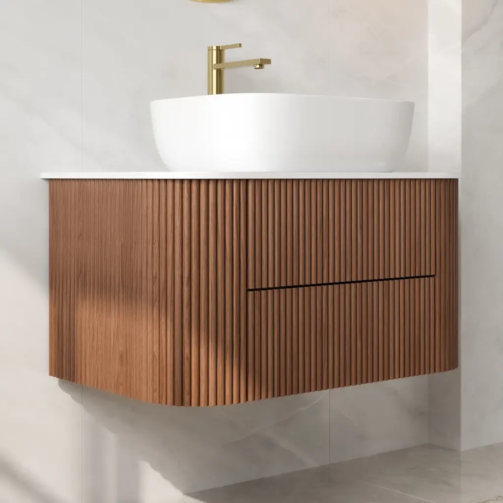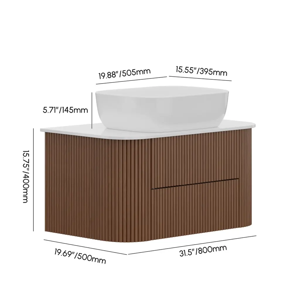 31.5" Fluted Bathroom Vanity Set Walnut Floating Bathroom Vanity With Vessel Sink