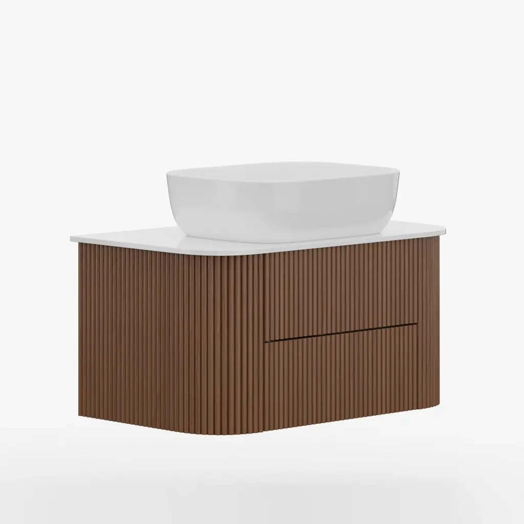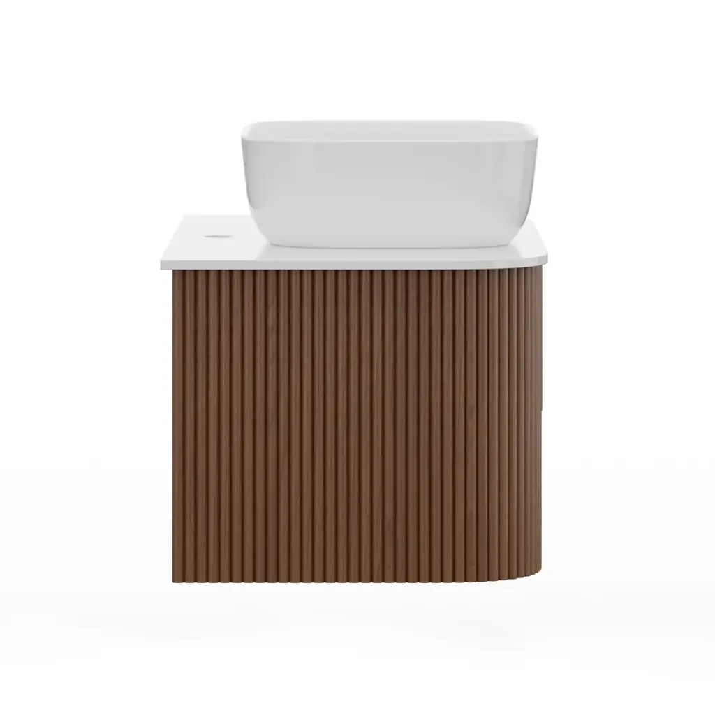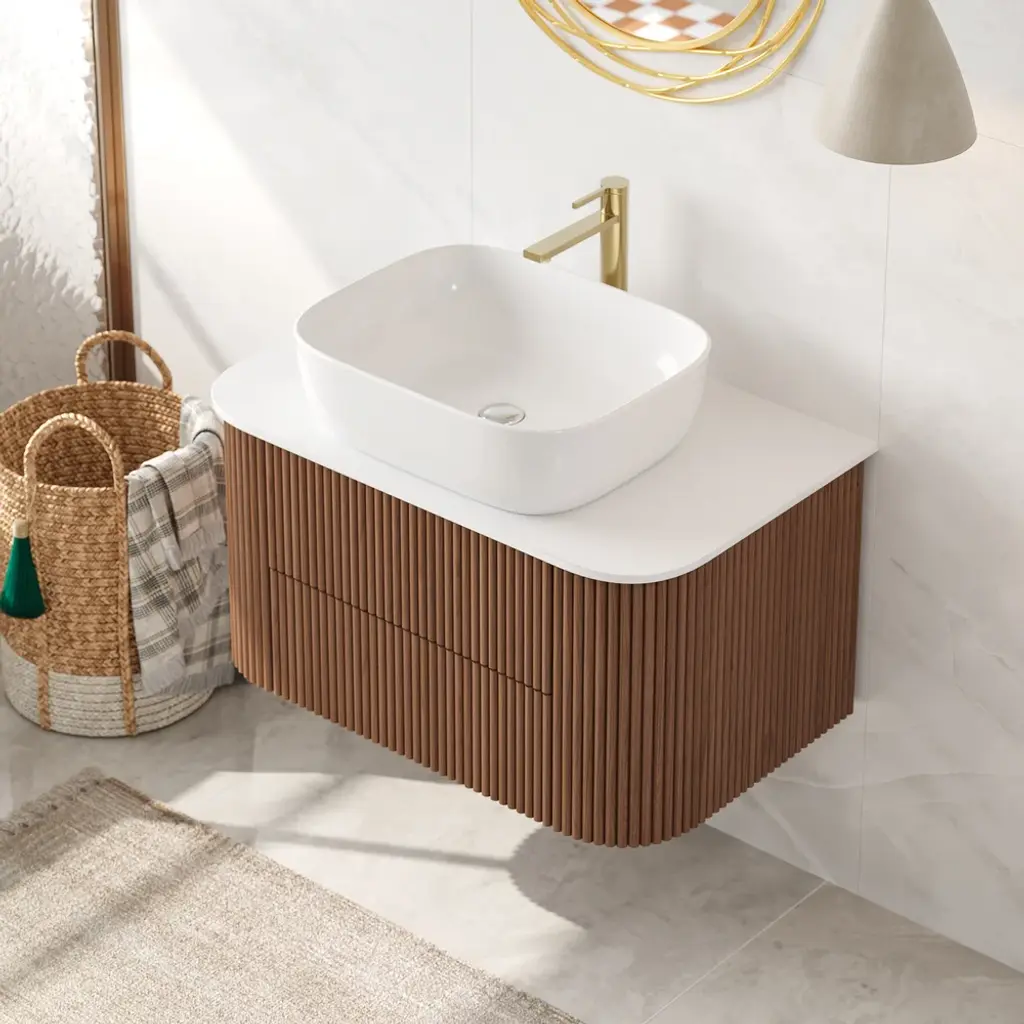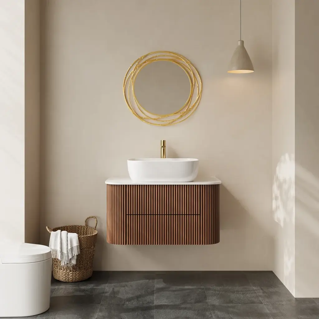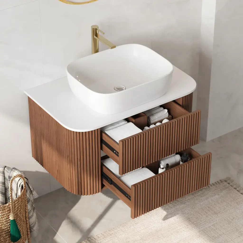 31.5" Fluted Bathroom Vanity Set Walnut Floating Bathroom Vanity With Vessel Sink