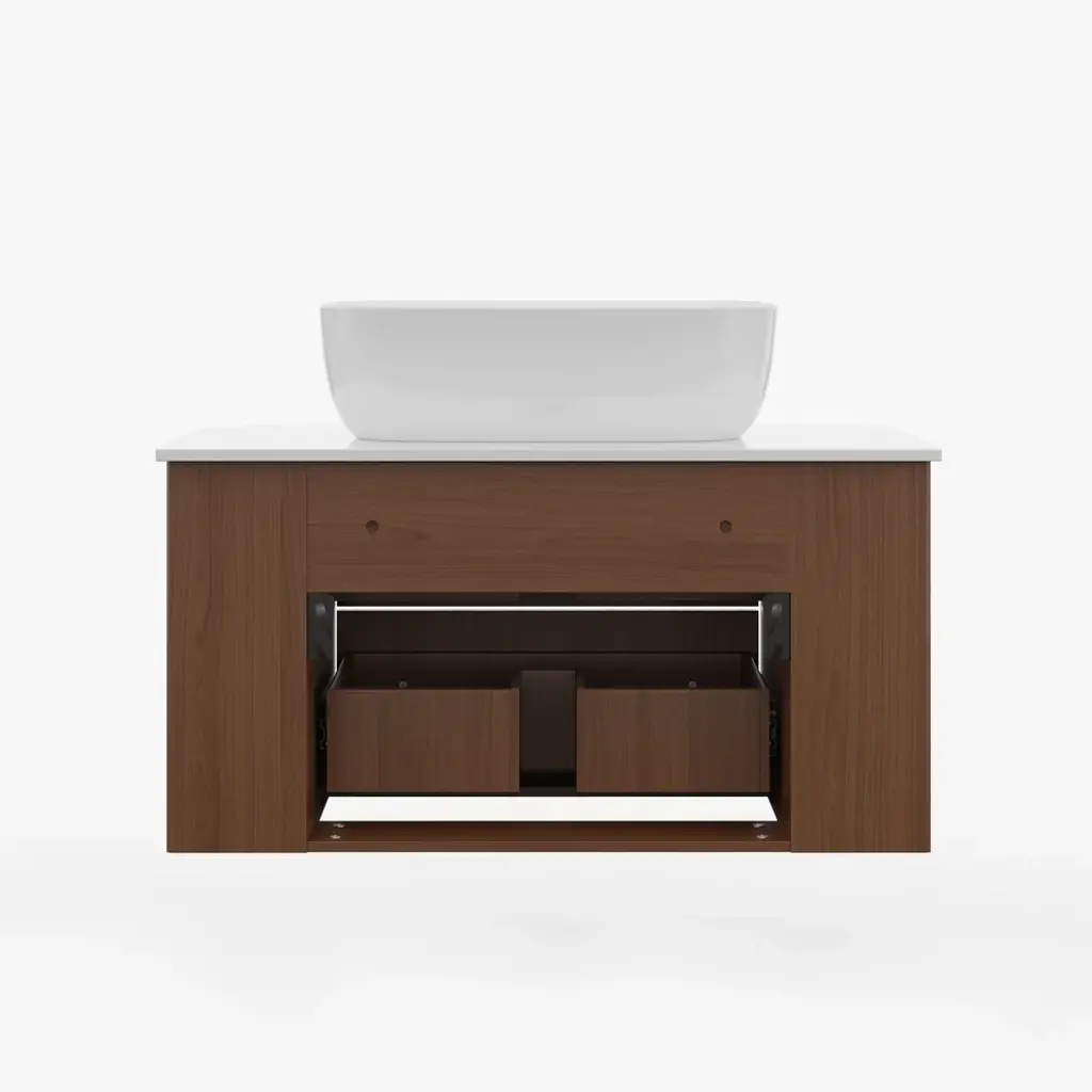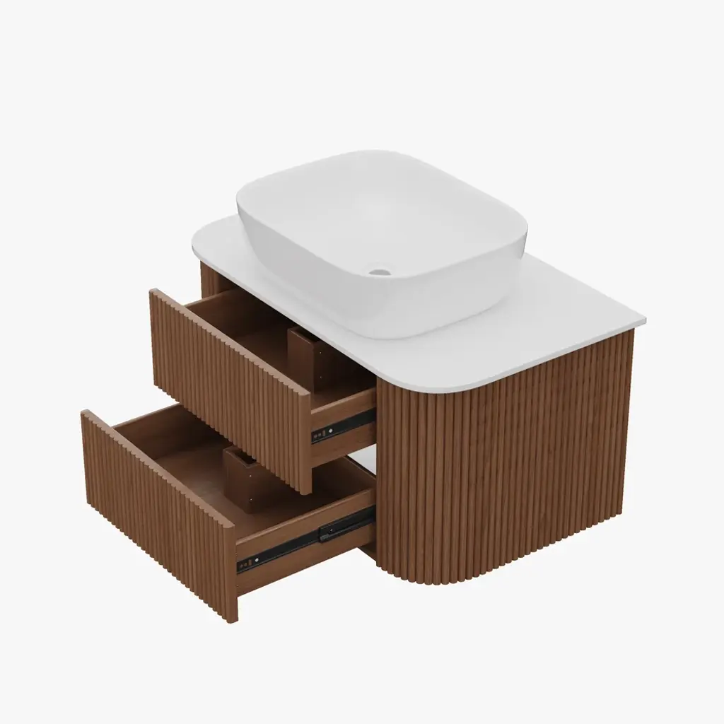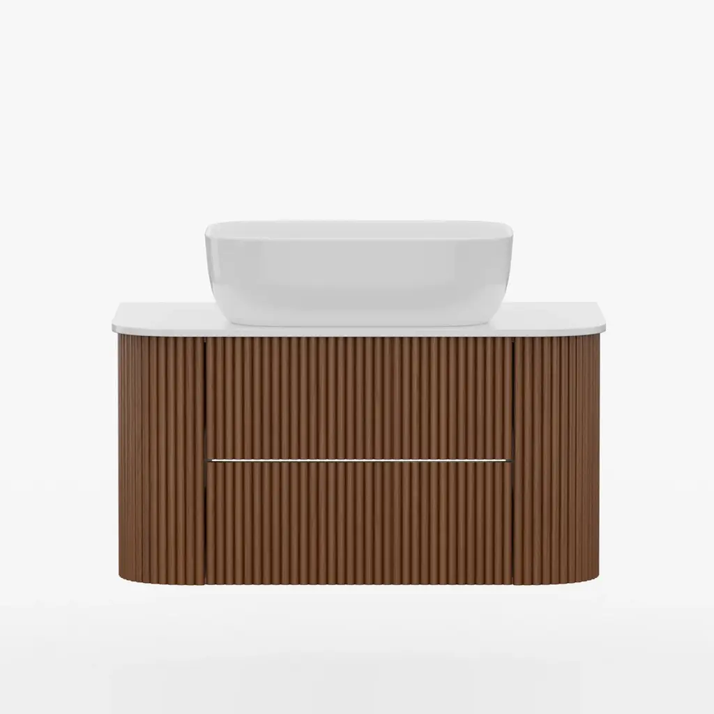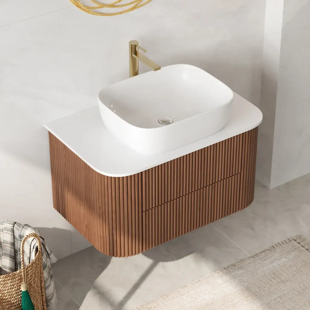 31.5" Fluted Bathroom Vanity Set Walnut Floating Bathroom Vanity With Vessel Sink