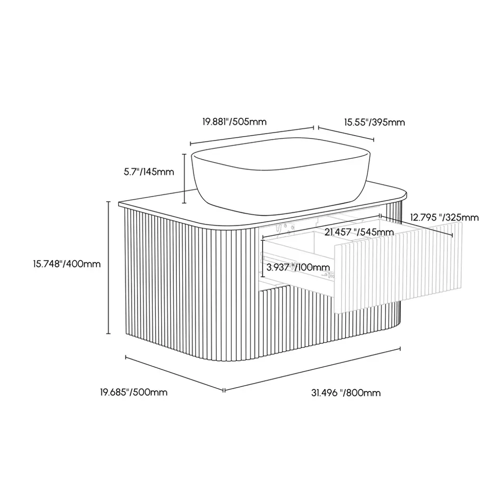 This 31.5" floating bathroom vanity merges modern style with exceptional functionality. The sintered stone top gives way to a more durable and easier-to-clean surface, while the ceramic vessel sink carries with it a hint of style. With two conveniently placed drawers for storage, this vanity keeps your bathroom organized and hygienic without compromising on style. The floating design ensures a sleeker, space-saver result that is perfect for contemporary bathrooms. Made of solid wood and engineered wood, this vanity is durable yet enhances the decor of your bathroom.