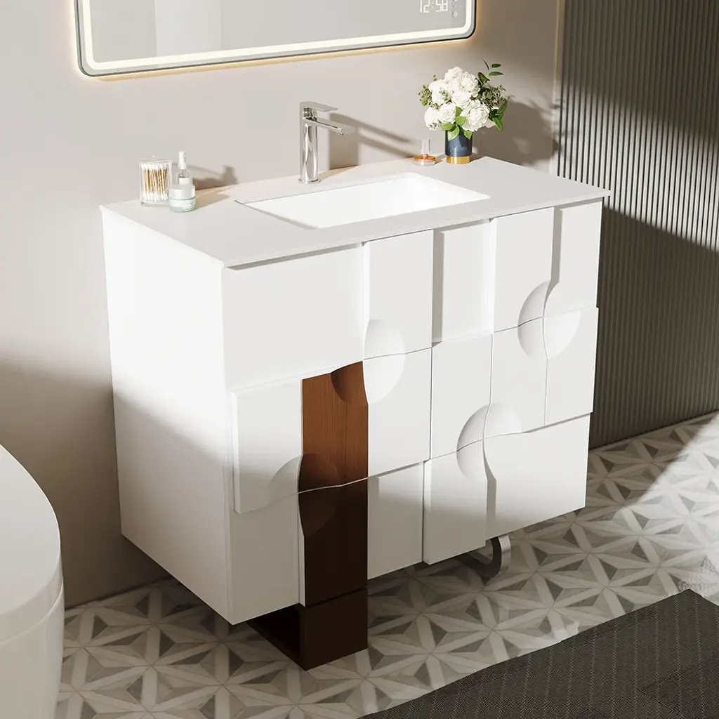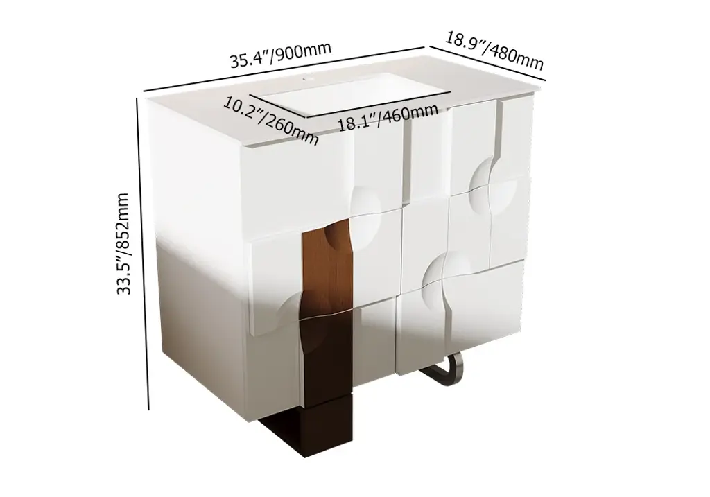 35" Freestanding Bathroom Vanity With Ceramics Undermount Sink In White & Walnut