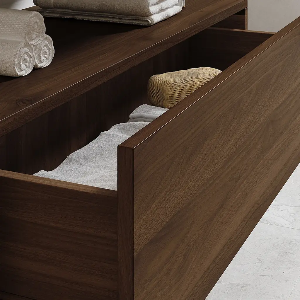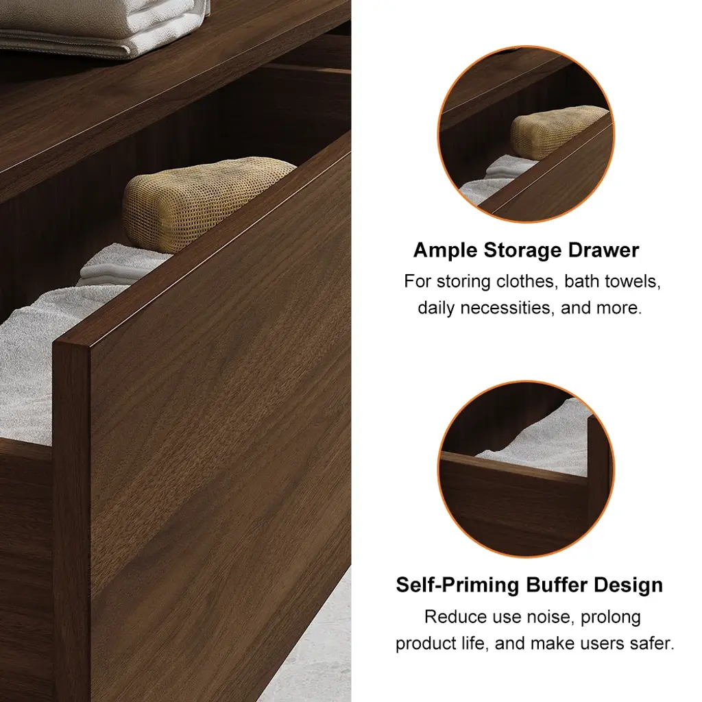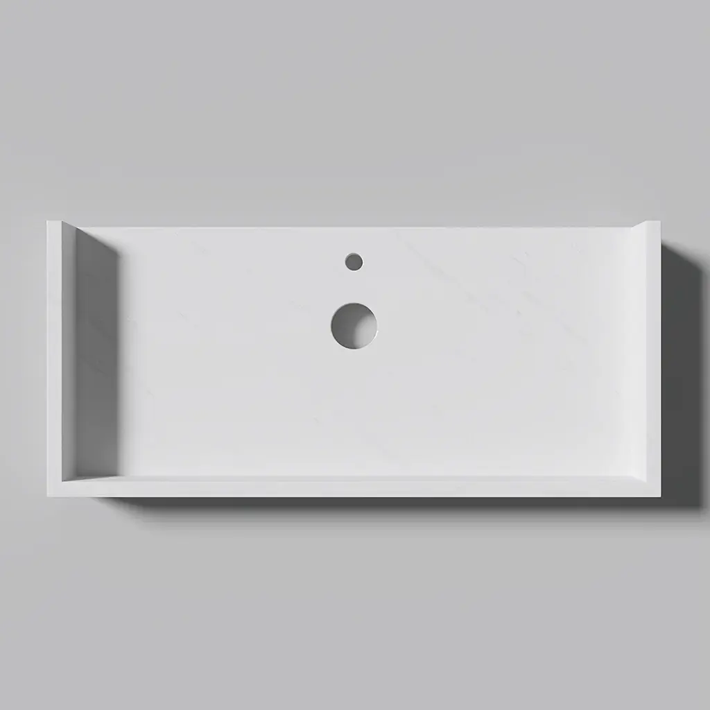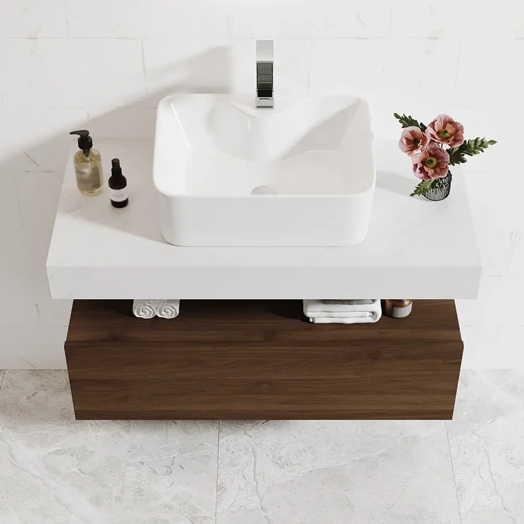 Elevate your bathroom with this 35.4" wall-mounted bathroom vanity. It features a durable sintered stone countertop, a modern rectangular vessel sink, and soft-close storage with a concealed cabinet. Sleek chrome hardware completes the minimalist look, offering both style and functionality.
