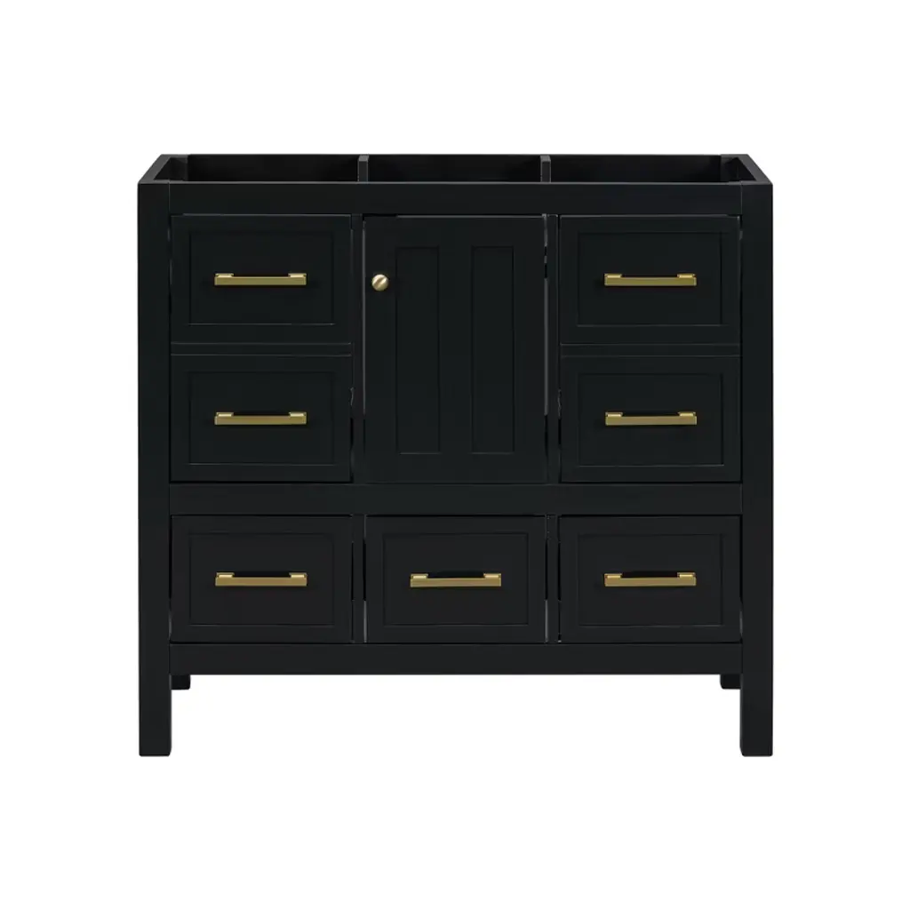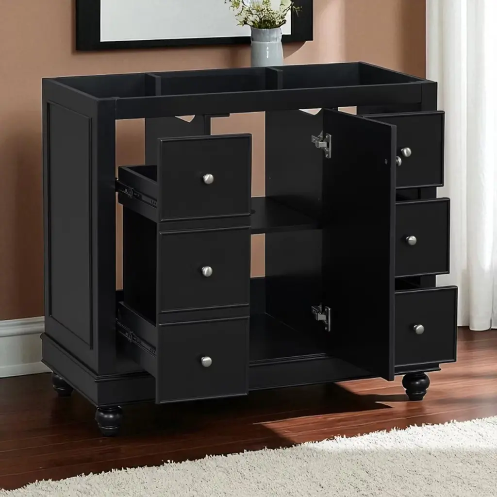 36" Bathroom Vanity With 4 Drawers And 1 Door, Solid Wood Frame Storage Cabinet, Adjustable Shelves (Sink Not Included)