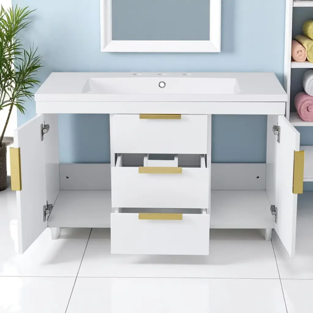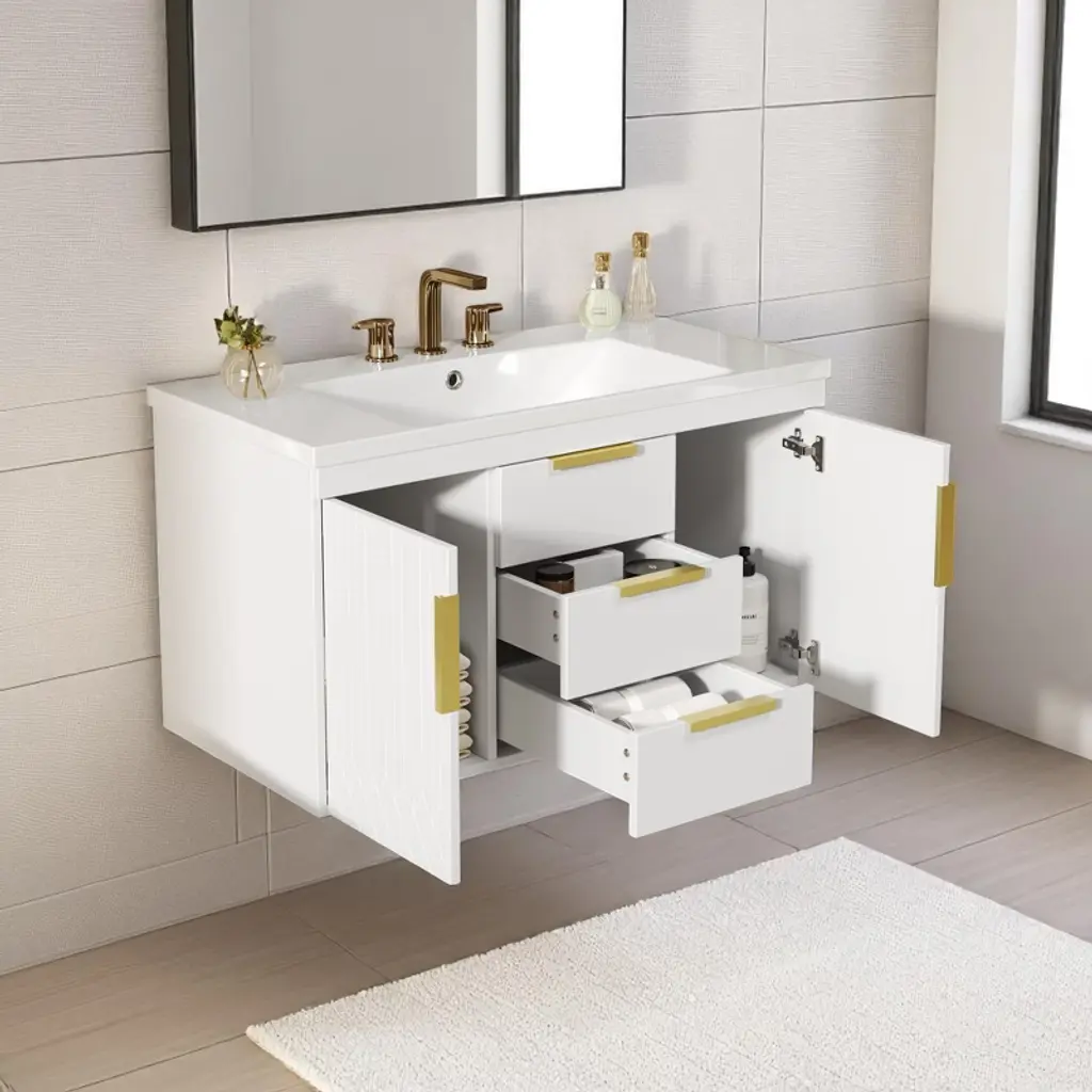 36" Wall-mounted Bathroom Vanity Cabinet With Resin Sink – Floating Door & Drawer Storage, 8" Centerset Faucet Compatible