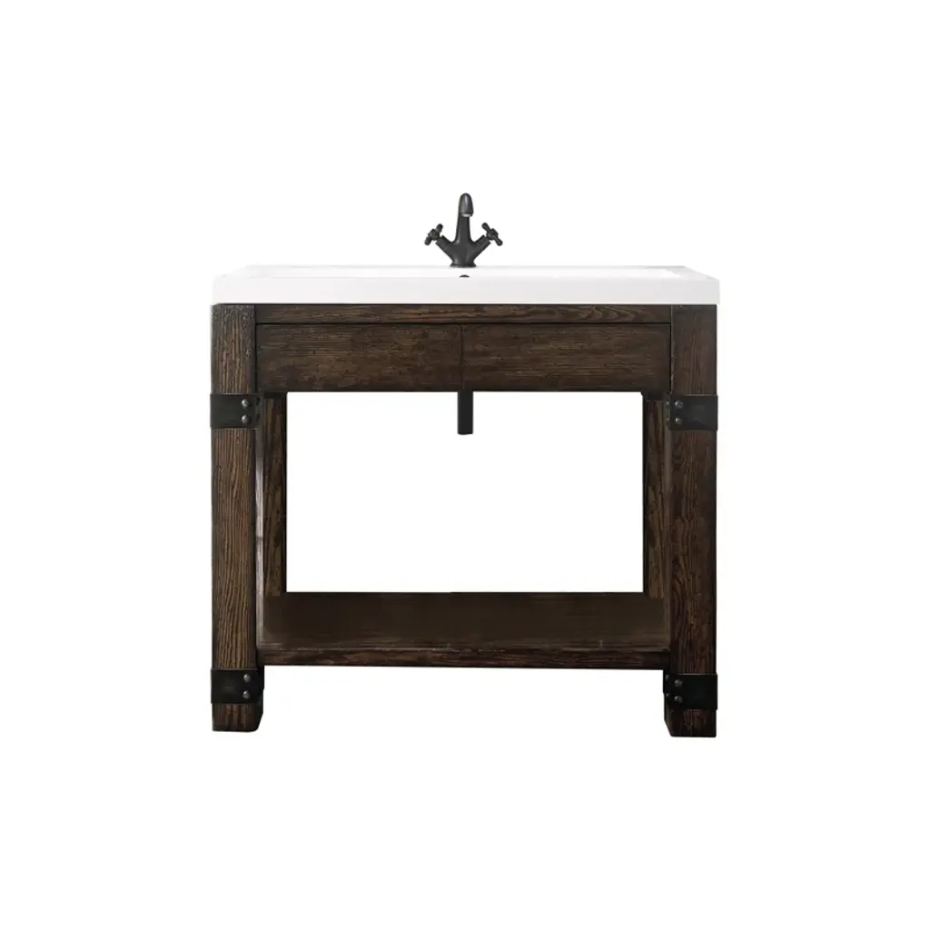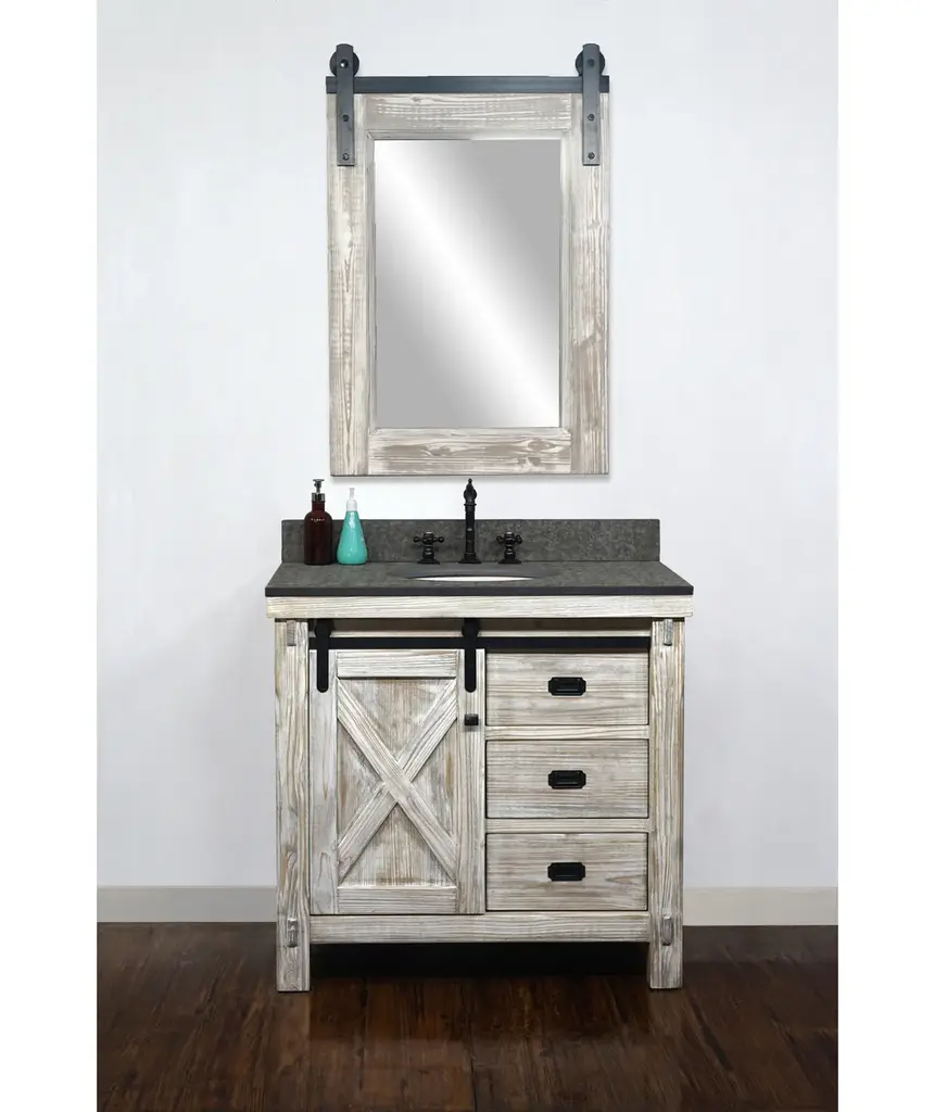 37" Rustic Solid Fir Barn Door Style Single Sink Vanity Matte Grey Granite Top