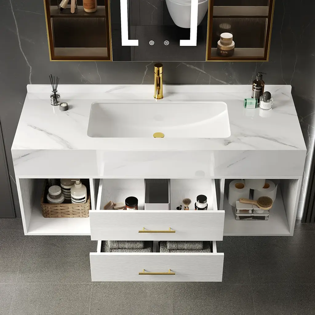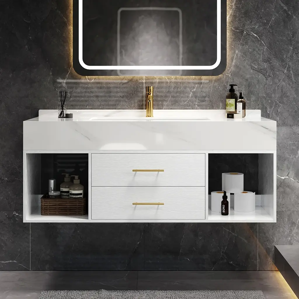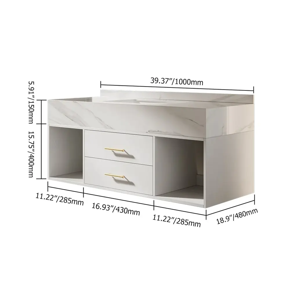 39.4" Floating White Bathroom Vanity With Sintered Stone Vessel Sink