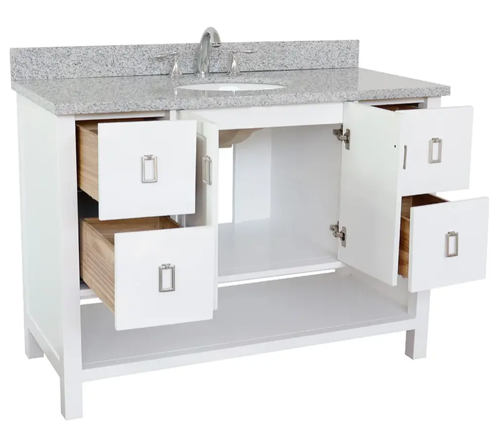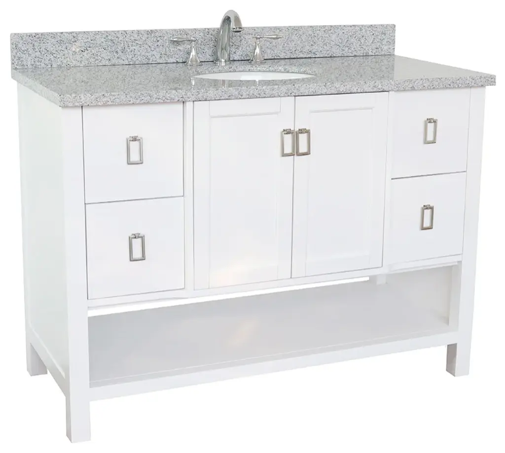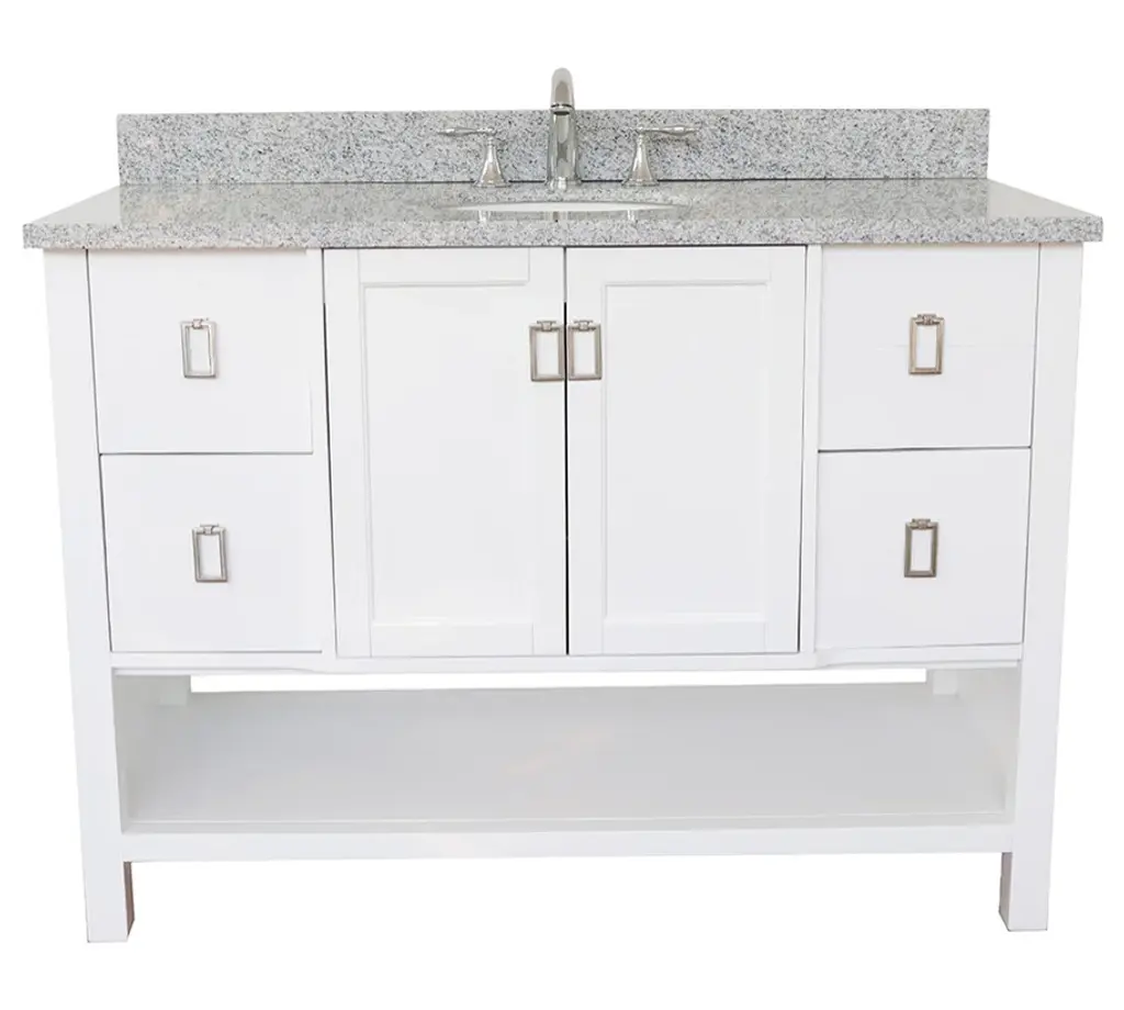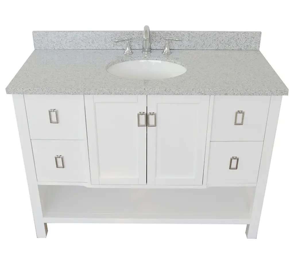 49" Single Vanity In White Finish With Gray Granite Top And Oval Sink