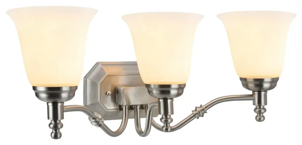 62022-2, 3-Light Metal Bathroom Vanity Wall Light Fixture, Satin Nickel