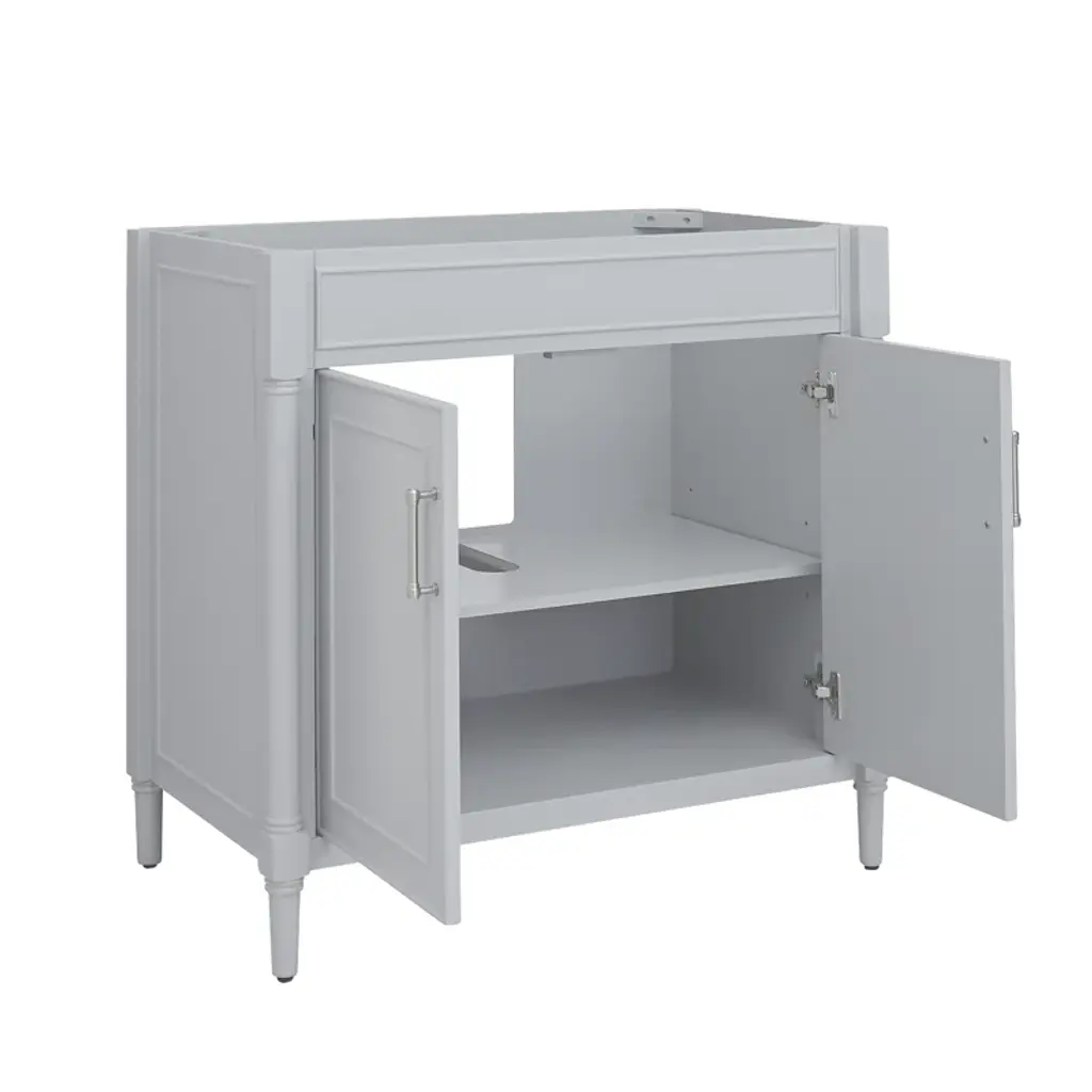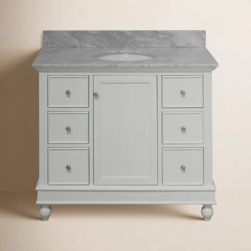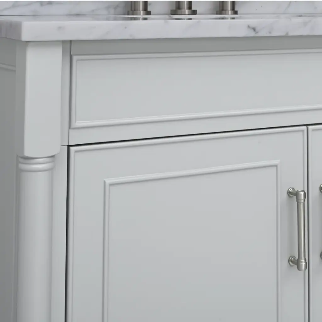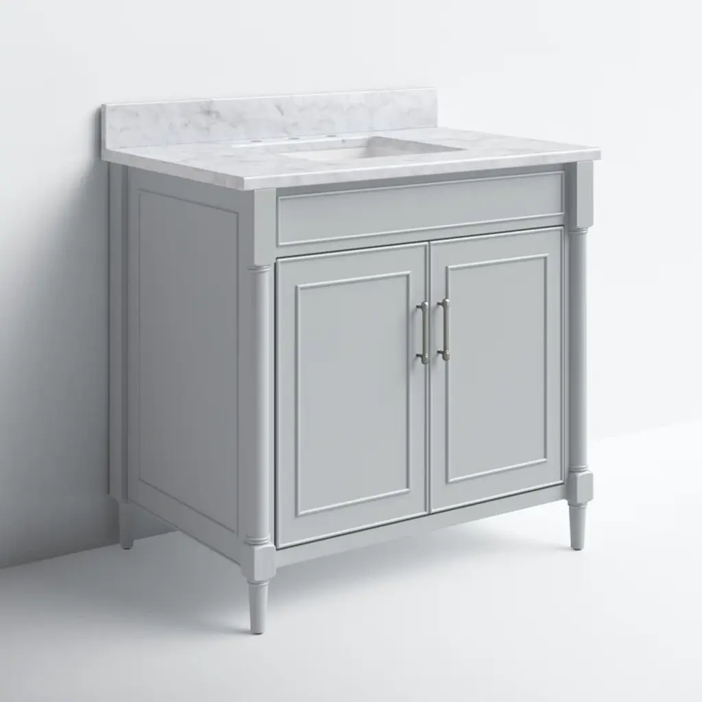This freestanding single vanity adds an elevated look to your bathroom with its gleaming hardware and turned detailing. It features a white marble countertop with a built-in backsplash, and the Vitreous china under-mount sink has a rectangular shape for an on-trend look we love. Two soft-close doors open to reveal hidden storage for extra linens, toiletries, and bathroom must-haves. This vanity is compatible with a widespread faucet (sold separately), and it's fully assembled, so it's ready for installation the moment it arrives.