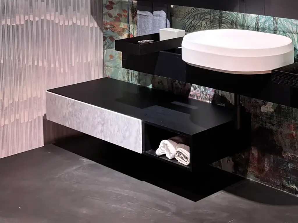 A complete range of cabinets that can be paired with the Agape collection countertop washbasins. Versatile to please all tastes and trends, including the most innovative and original.Composition:ALC2140RW - SIDE_CASE L.140 H.20 DARK OAK The container cases are made of plywood with wooden covering.ALG2040RW - SIDE_OPEN COMPARTMENT L. 40 H.20 DARK OAK The open compartments have standard dimensions and are available in the same finish as the case.ALD2100RW - DRAWER_SIDE L.100 H.20 DARK OAK The finish of the drawer is the same as the chest.ALF2100MC SIDE_FRONT L.100 H.20 WHITE CARRARA MARBLE ******************************************************************************************PURCHASE INFORMATIONArticle displayed at the Archiproducts Bari showroom - Corso V. Emanuele II, 189 Bari.The product may have imperfections due to exposure.For more info or photo details contact the address bari@archiproducts.com******************************************************************************************