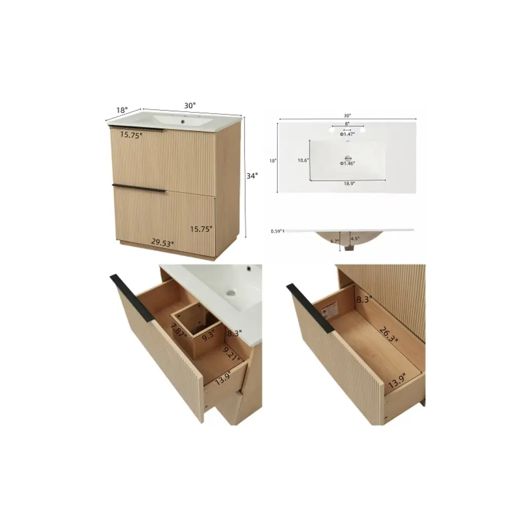 Akoasm 30 In. W Bathroom Vanity With Ceramic Sink And Full-extension Drawers-natural