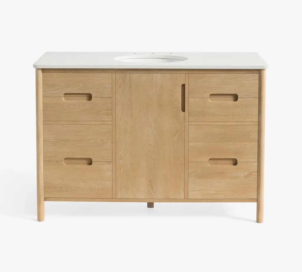 This bathroom cabinet features a meticulously crafted bright white ceramic countertop and an integrated sink. The pore-free ceramic surface is stain-resistant, scratch-resistant, and antibacterial, maintaining its luster for years to come. The smooth, easy-to-clean surface wipes clean effortlessly, while the deep basin design prevents water from splashing out.