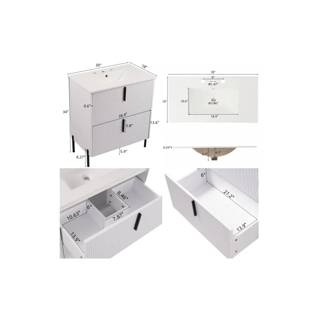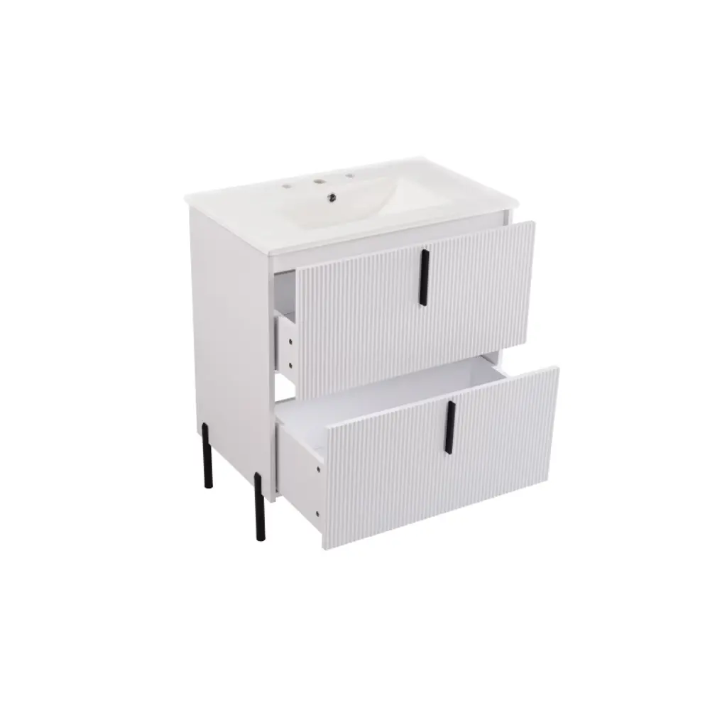 Akoasm 30 In. W Bathroom Vanity With Ceramic Sink And Full-extension Drawers-white