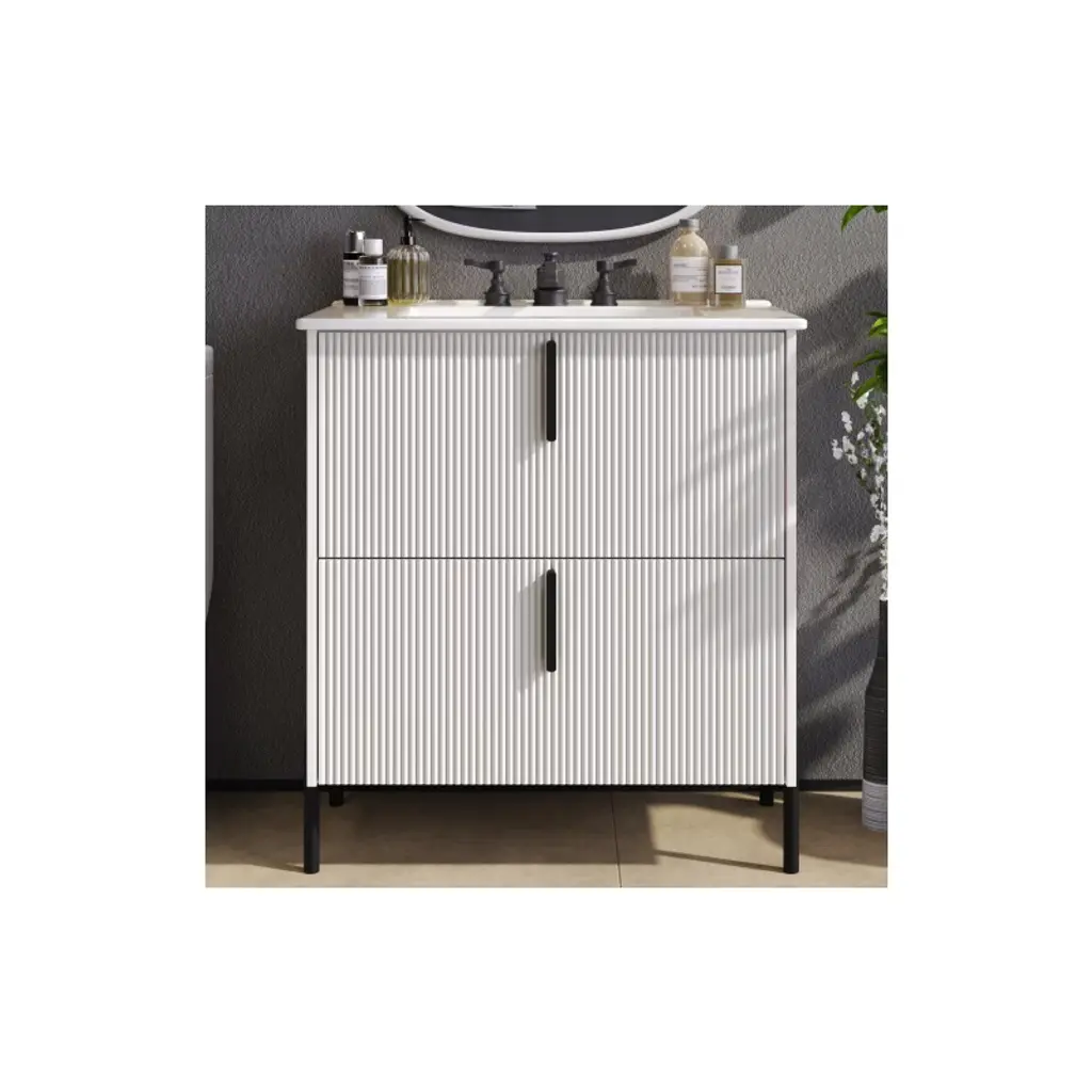 This bathroom cabinet features a meticulously crafted bright white ceramic countertop and an integrated sink. The pore-free ceramic surface is stain-resistant, scratch-resistant, and antibacterial, maintaining its luster for years to come. The smooth, easy-to-clean surface wipes clean effortlessly, while the deep basin design prevents water from splashing out.