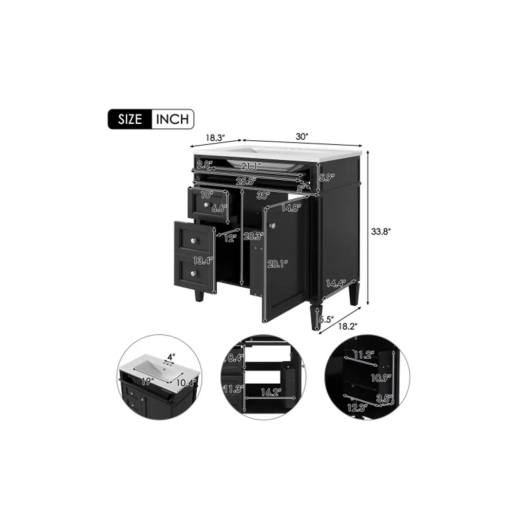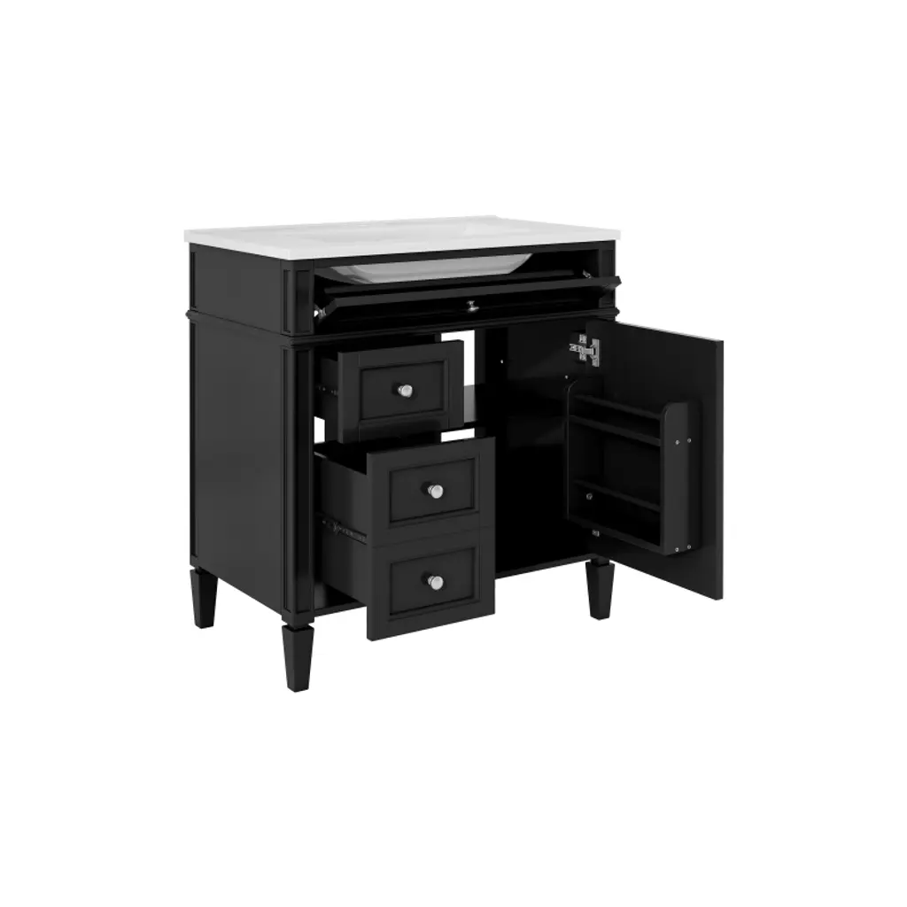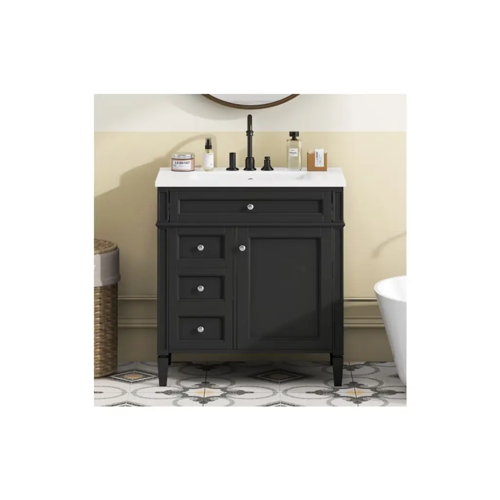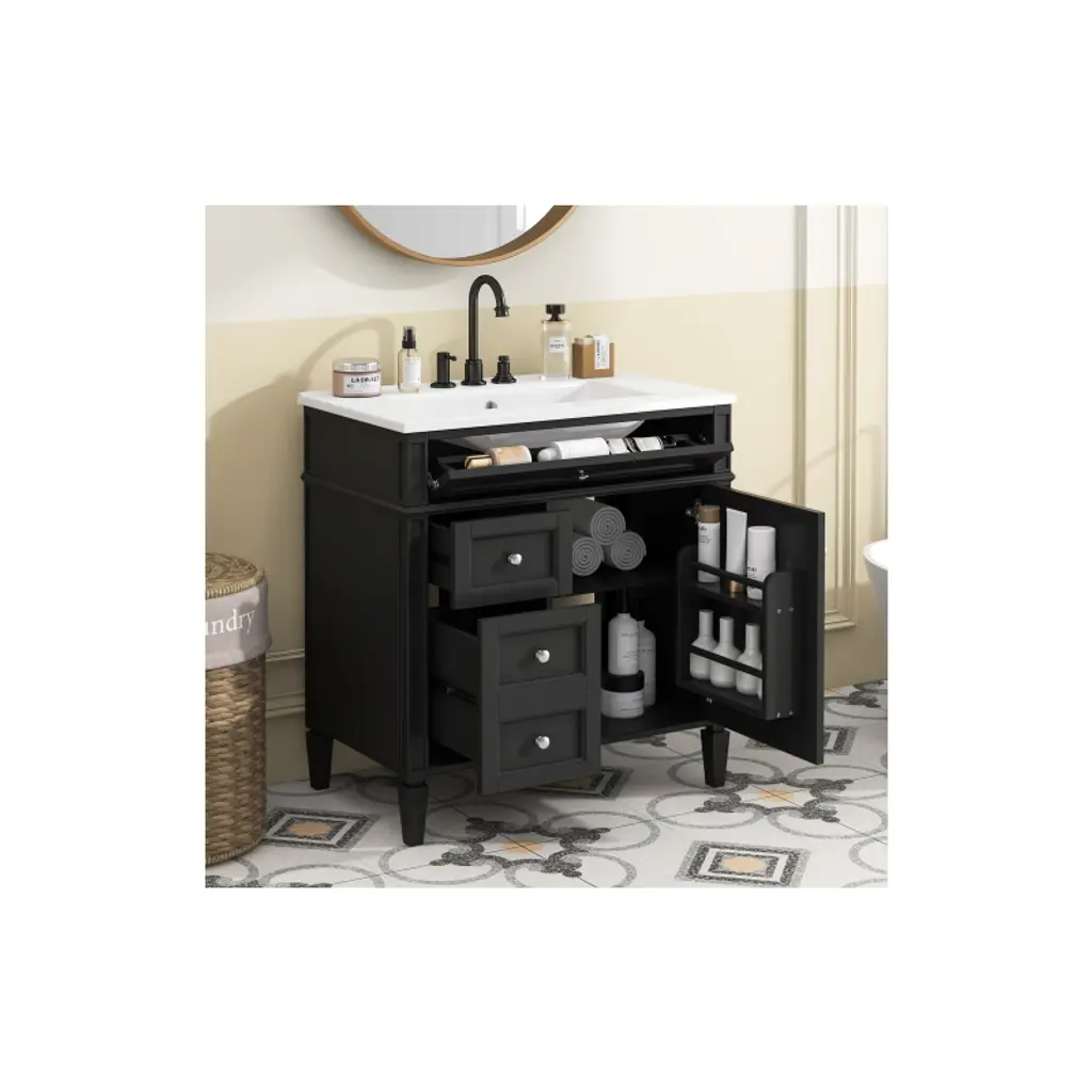 Akoasm 30 In. W Modern Single Sink Bathroom Vanity With 2 Drawers And A Tip-out Drawer-black