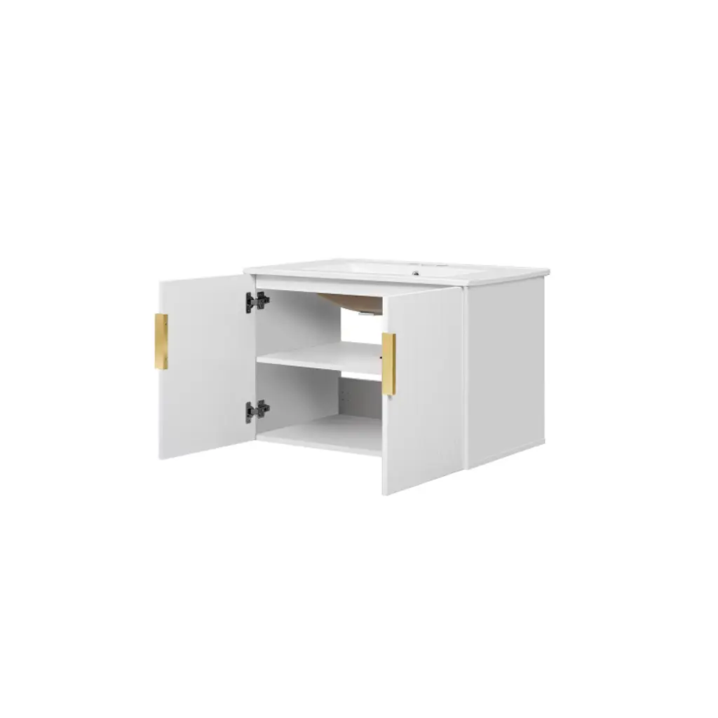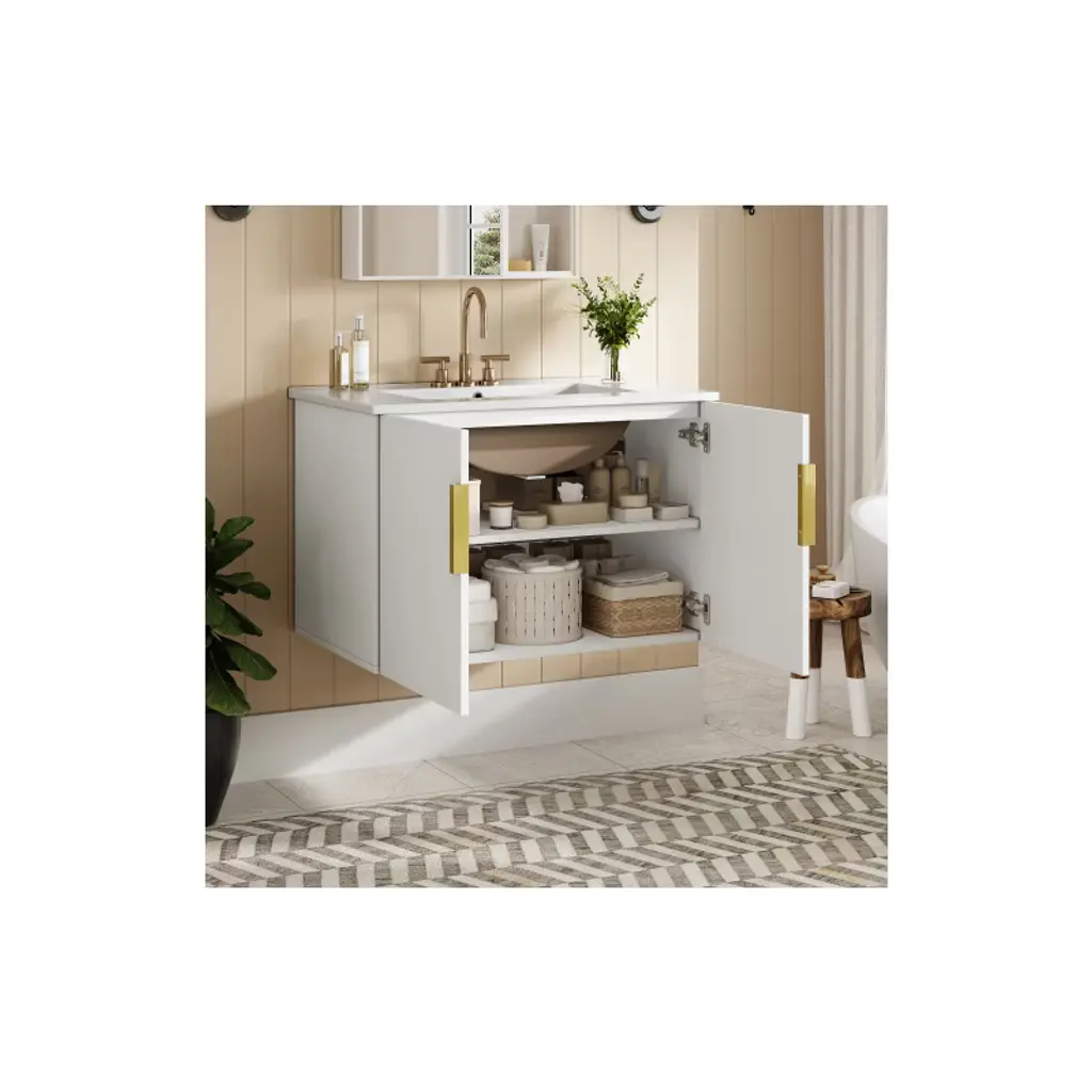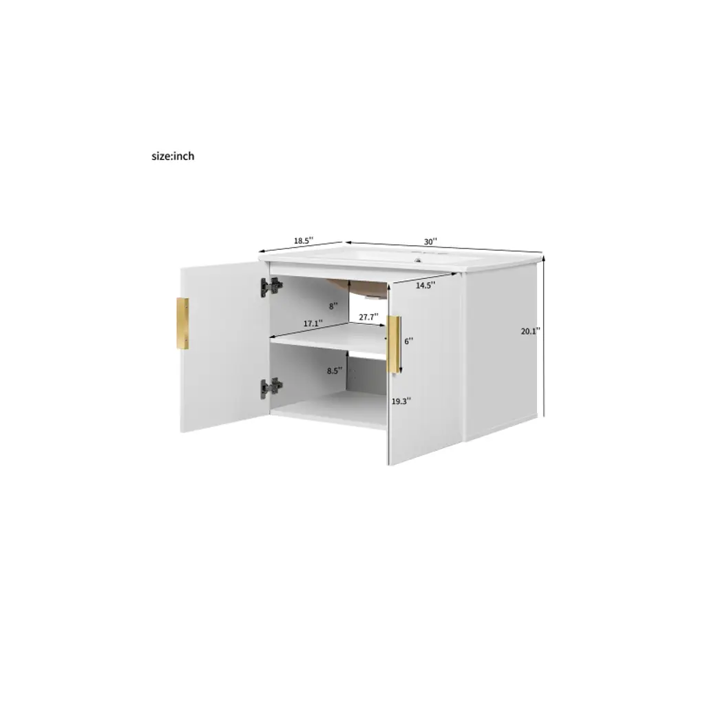 Akoasm 30 In. W Vintage Bathroom Vanity With 2 Soft Closing Doors And 3 Holes Single Ceramic Sink-white