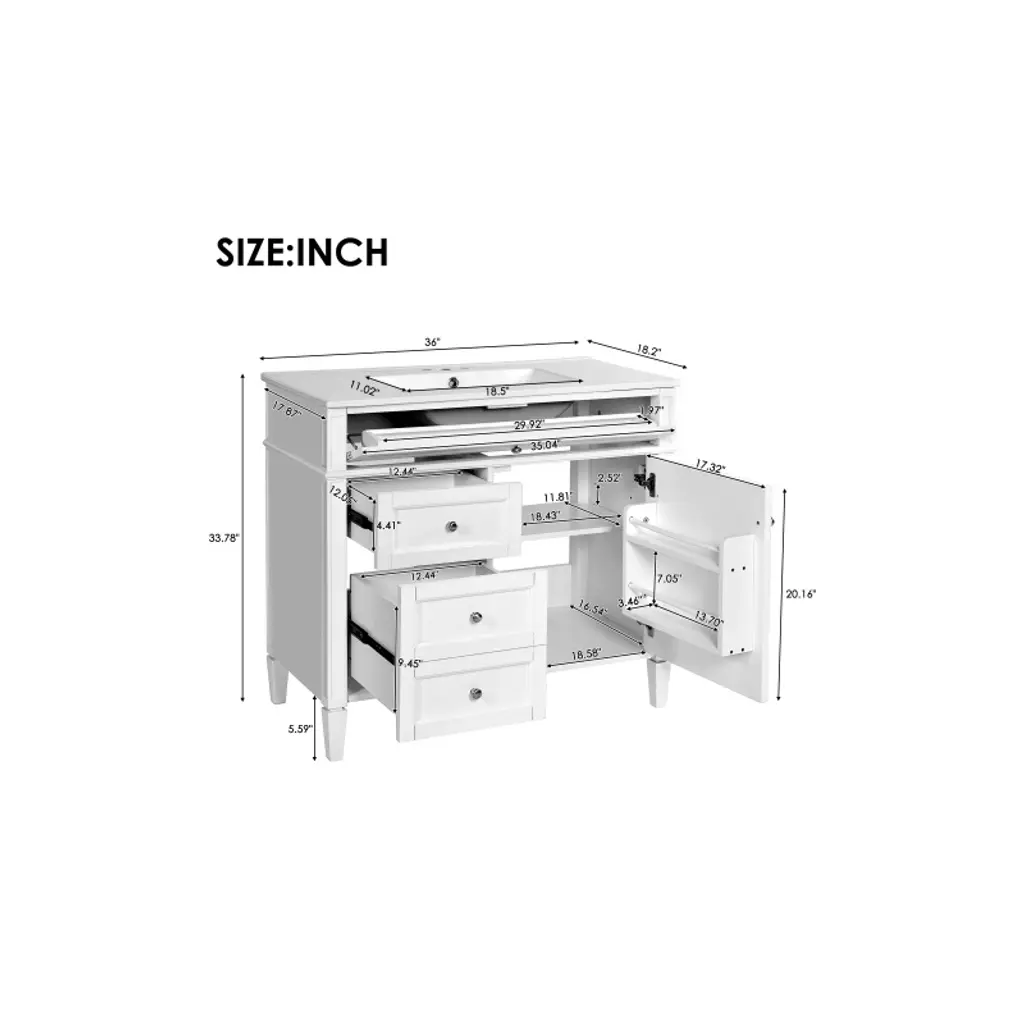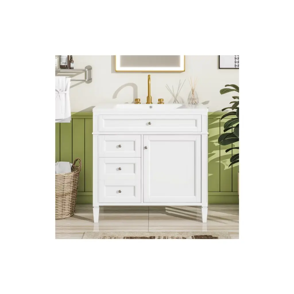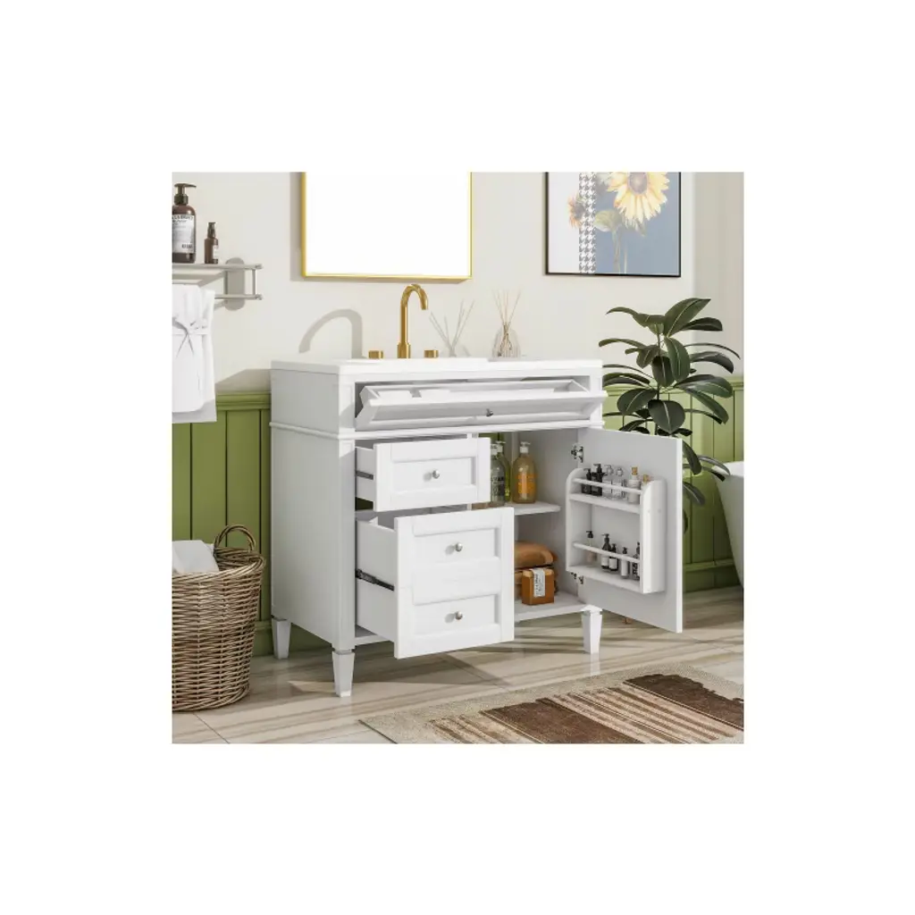 Akoasm 36 In. W Modern Single Sink Bathroom Vanity With 2 Drawers And A Tip-out Drawer-white