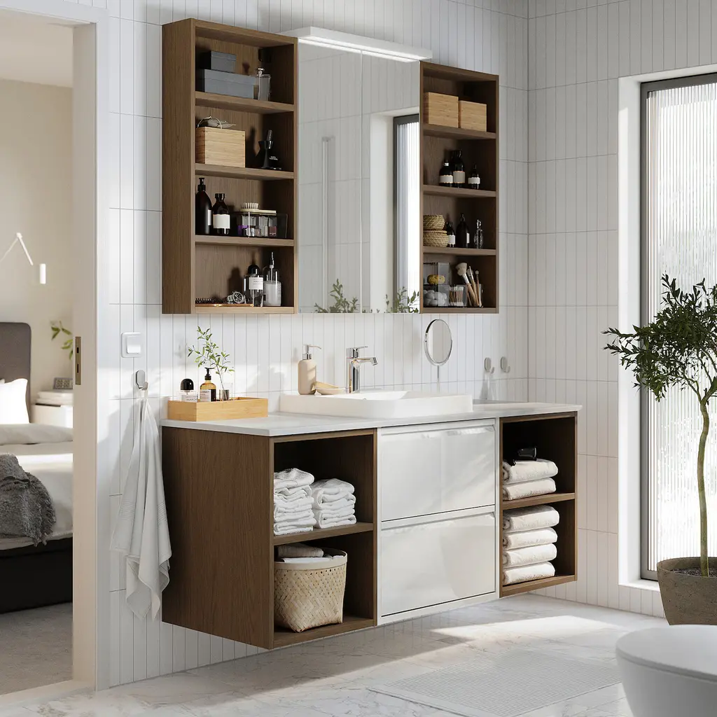 ÄNgsjön / Backsjön Bathroom Vanity With Sink & Faucet - High-Gloss White/brown Oak Effect/white Marble Effect 61x21 1/2x28 1/4 "