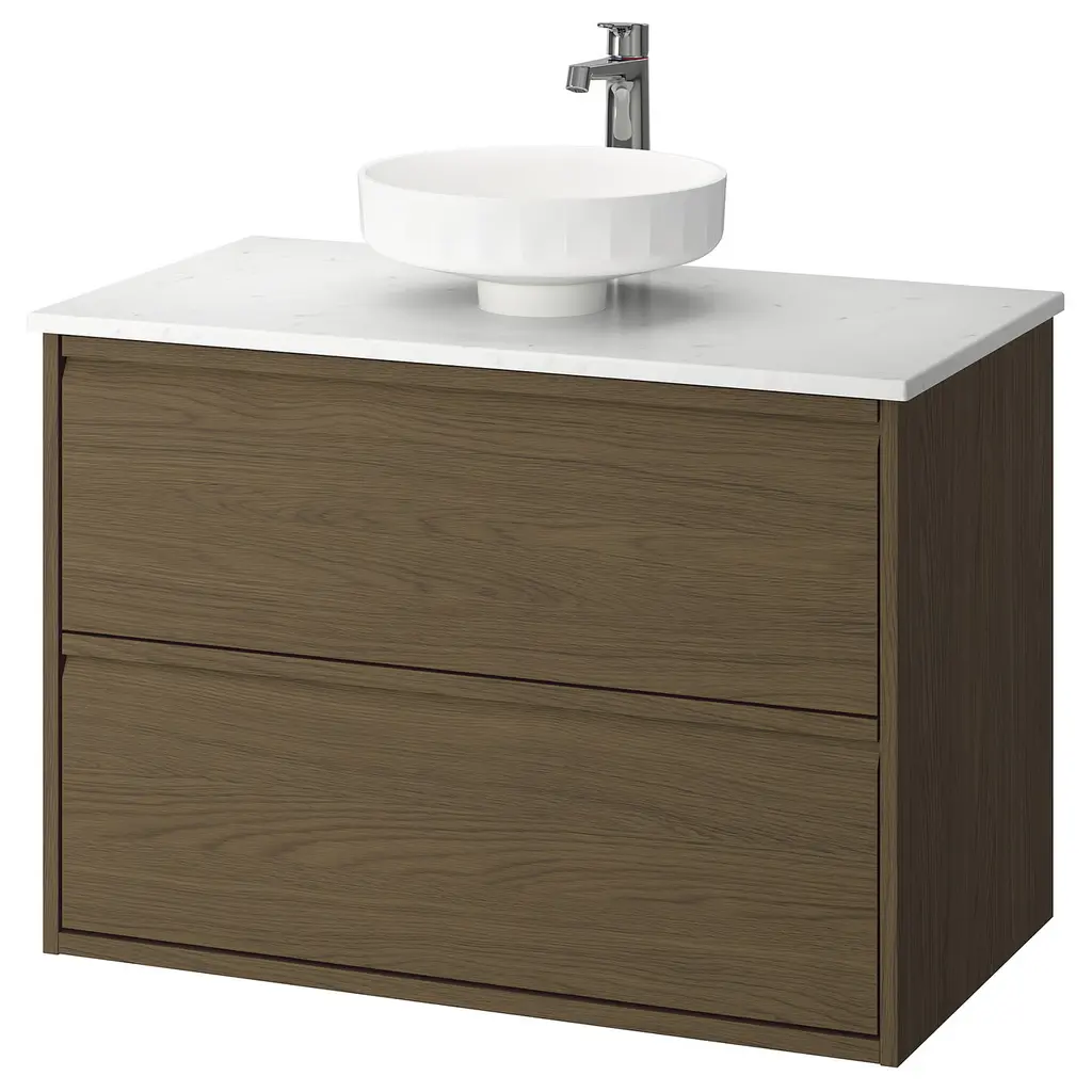 ÄNgsjön / Backsjön Bathroom Vanity With Sink & Faucets - Brown Oak Effect/black Marble Effect 49x21 1/2x28 1/4 "
