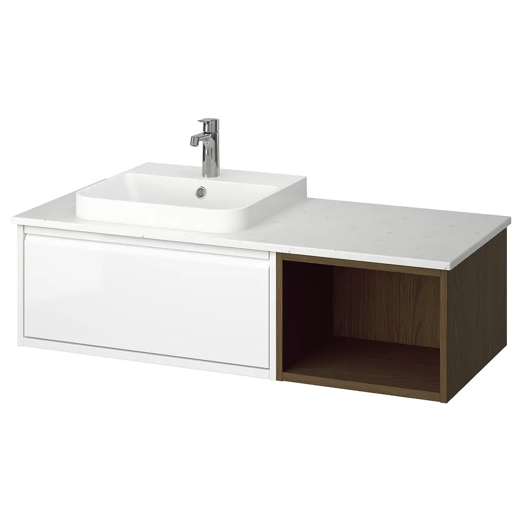 ÄNgsjön / Backsjön Double Vanity With Sink & Faucet - High Gloss White/bamboo 49x21 1/2x16 1/4 "