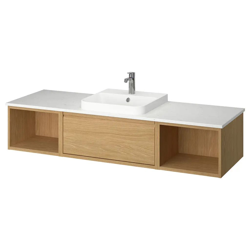 ÄNGSJÖN / BACKSJÖN Double vanity with sink & faucet - high gloss white/bamboo 49x21 1/2x16 1/4 ". Depending on your space and needs, complete this solution with your choice of a mirror or mirror cabinet from our range, sold separately. This product bears the CE mark.