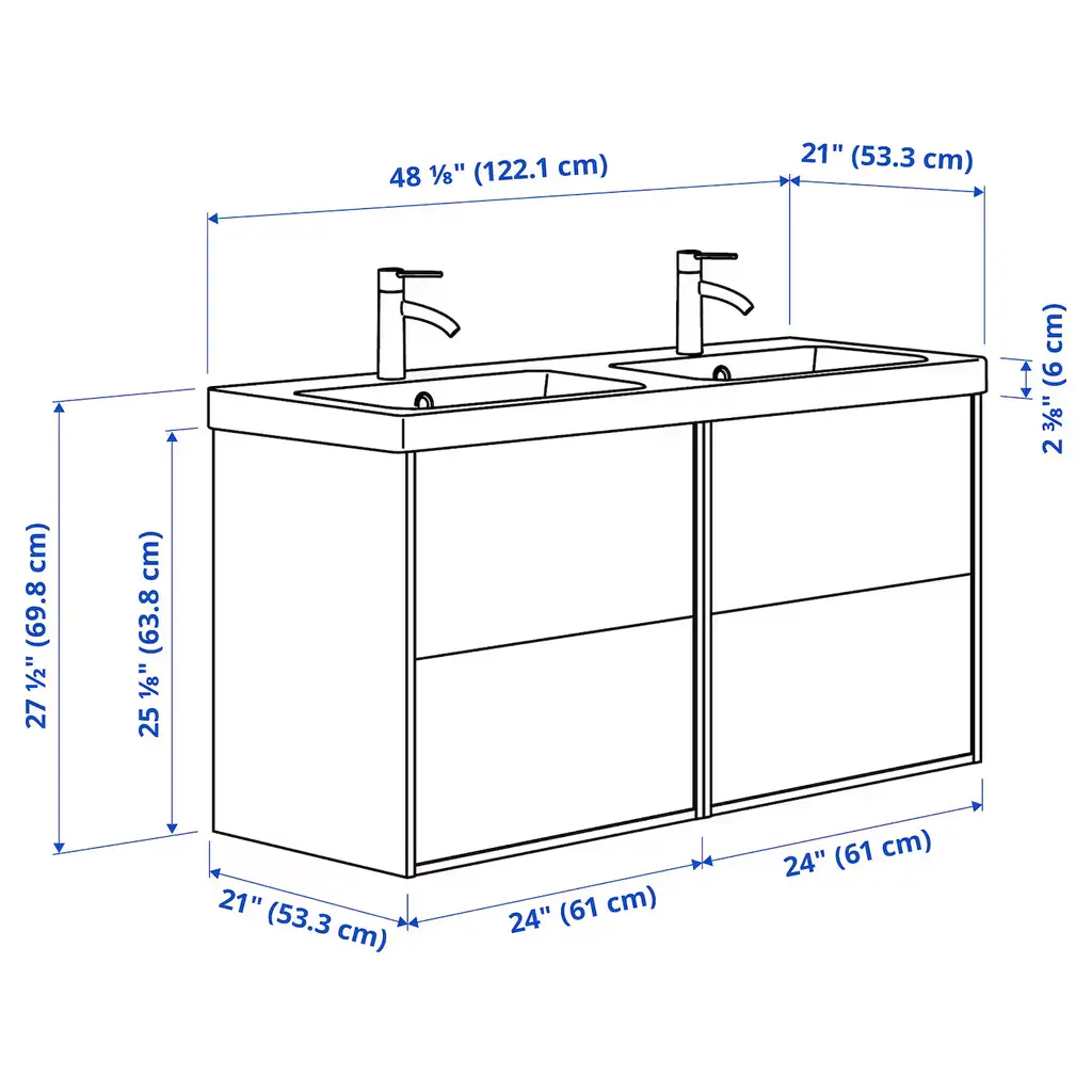 ÄNgsjön / Backsjön Double Vanity With Sink & Faucet - Oak Effect 48 1/8x21x27 1/2 "