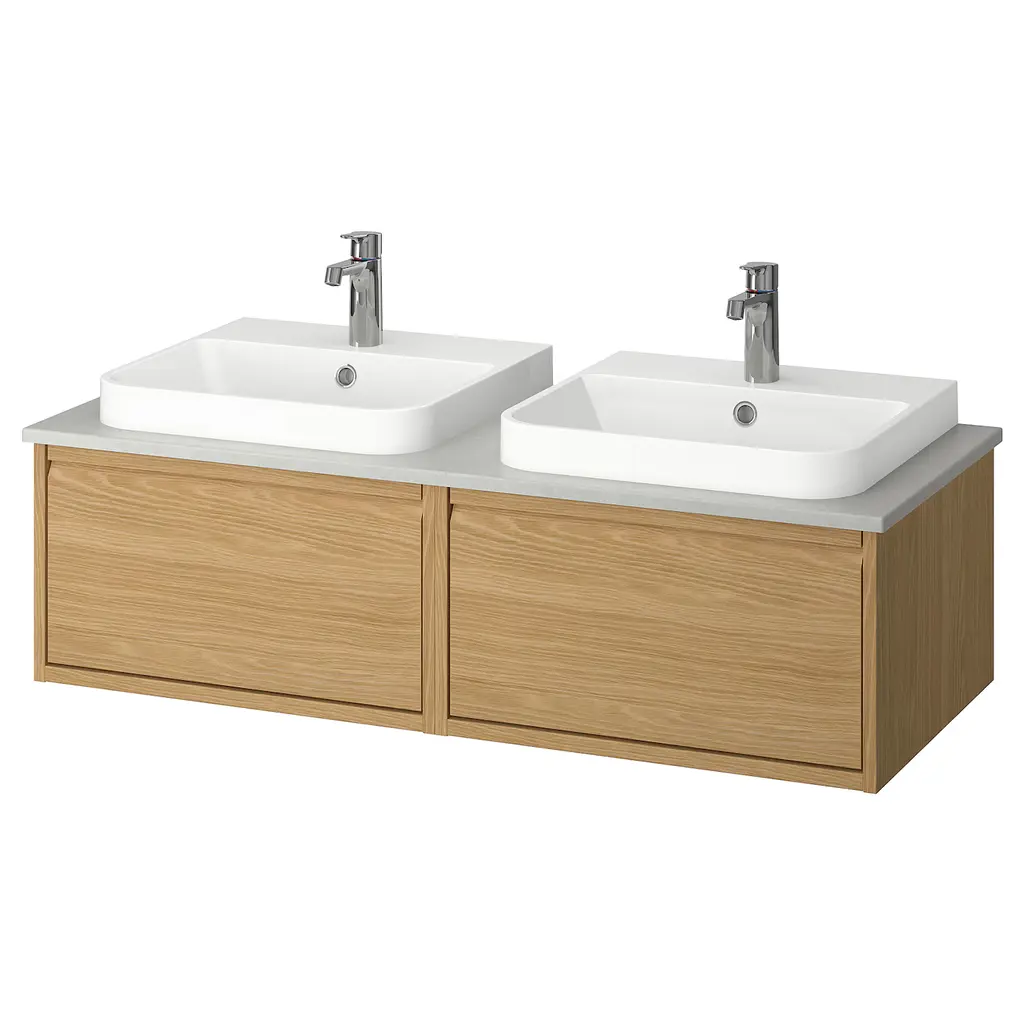 ÄNgsjön / Backsjön Double Vanity With Sink & Faucet - Oak Effect/gray Stone Effect 49x21 1/2x16 1/4 "