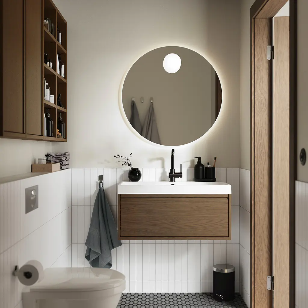 ÄNGSJÖN Bathroom vanity with drawer - brown oak effect 30x21x13 1/8 ". Generous, full drawer storage capacity for all your essentials as piping is led through the back and not via a cut-out in the drawer. The drawer opens all the way for a good overview.