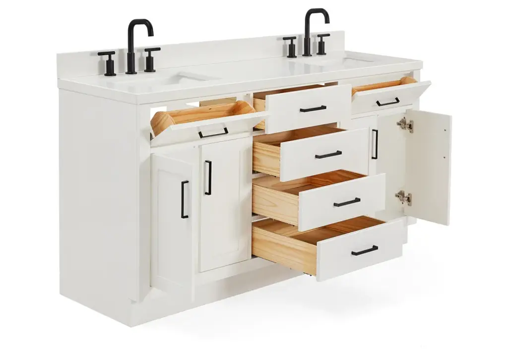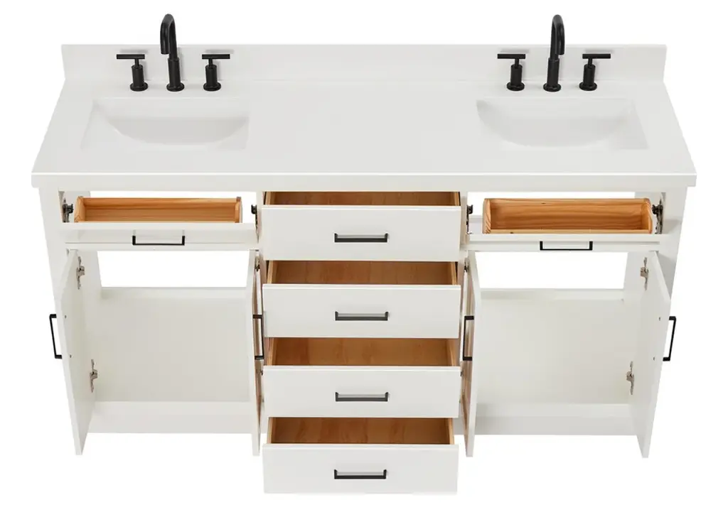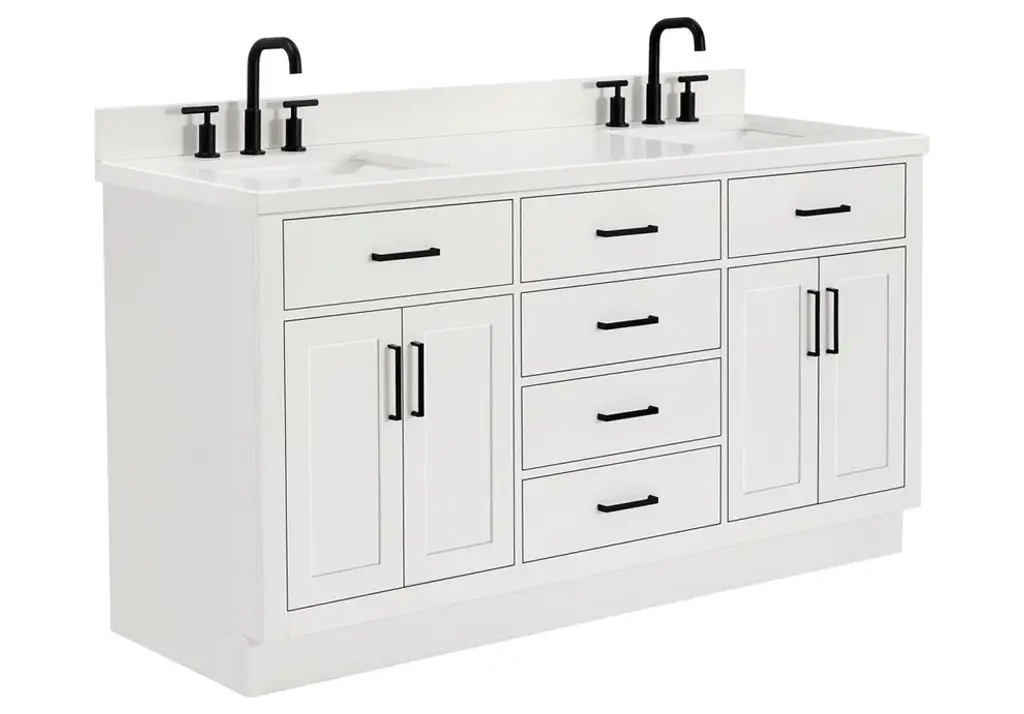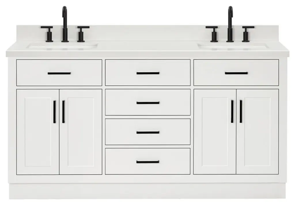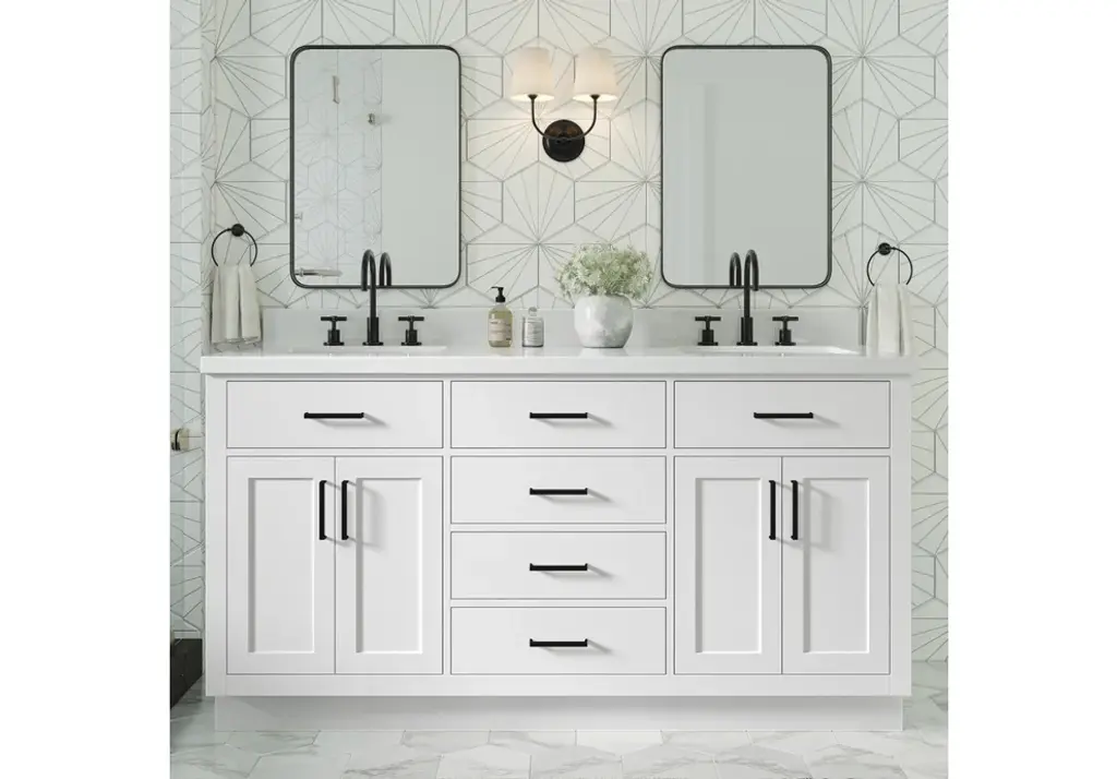 Ariel Hepburn 67" Double Sink Vanity, White, 1.5" White Quartz