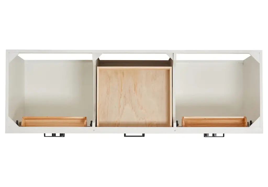 The Hepburn vanity is an elegant and fancy looking vanity that brings the same style as Audrey Hepburn, one of the most famous actress of all times. The mixture of tradition and modern makes it stand out from the most vanity collections. Built with high quality materials, it gives you a warm, soft look in your bathroomCovered under Ariel's 3 year limited warranty67"W x 22"D x 36"HHardwood plywood construction for lasting beauty and durabilityWhite painted finish4 soft-closing doors with adjustable hinges so you'll never have to worry about hearing a door slamFour full extension, self-closing drawers and two 45-degree open drawer to meet all your storage needsDove-tail construction drawer boxes for additional strength and stability
