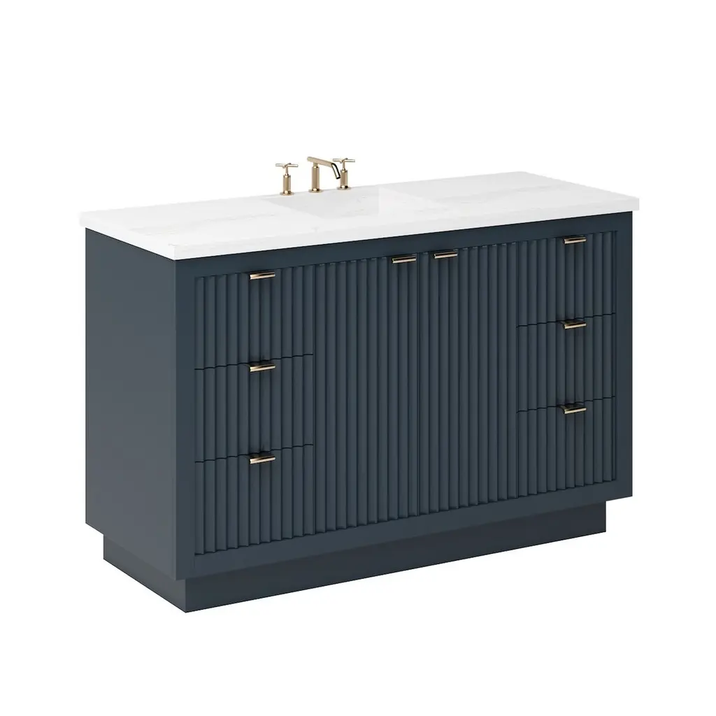 The Ashford Single Extra Wide Bathroom Vanity is a masterpiece of contemporary design, exuding a romantic charm that transforms any bathroom into a sanctuary of elegance. Its sleek scalloped details whisper sophistication, while the bold two-inch frame stands proudly, embracing the soft-close doors and drawers with a gentle embrace. This freestanding vanity is not just a piece of furniture; it's a statement of style and functionality, crafted to endure the test of time. Finished in a lustrous satin varnish, it offers a versatile allure, available in both single and double configurations to suit any space. The Ashford collection invites you to indulge in its timeless beauty, offering a variety of sizes to perfectly fit your needs. Let the Ashford vanity be the heart of your bathroom, where every glance is met with admiration and every touch speaks of quality.