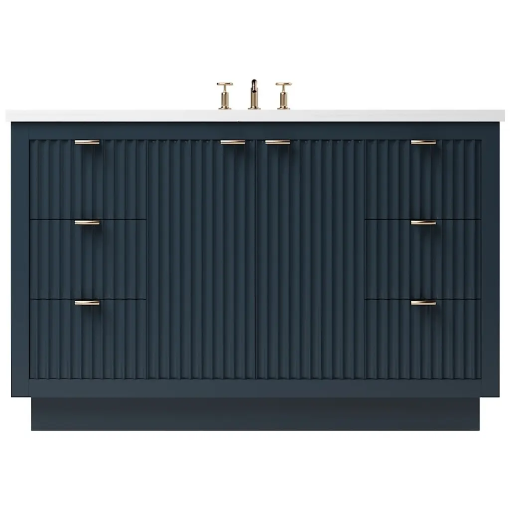 The Ashford Single Extra Wide Bathroom Vanity is a masterpiece of contemporary design, exuding a romantic charm that transforms any bathroom into a sanctuary of elegance. Its sleek scalloped details whisper sophistication, while the bold two-inch frame stands proudly, embracing the soft-close doors and drawers with a gentle embrace. This freestanding vanity is not just a piece of furniture; it's a statement of style and functionality, crafted to endure the test of time. Finished in a lustrous satin varnish, it offers a versatile allure, available in both single and double configurations to suit any space. The Ashford collection invites you to indulge in its timeless beauty, offering a variety of sizes to perfectly fit your needs. Let the Ashford vanity be the heart of your bathroom, where every glance is met with admiration and every touch speaks of quality.