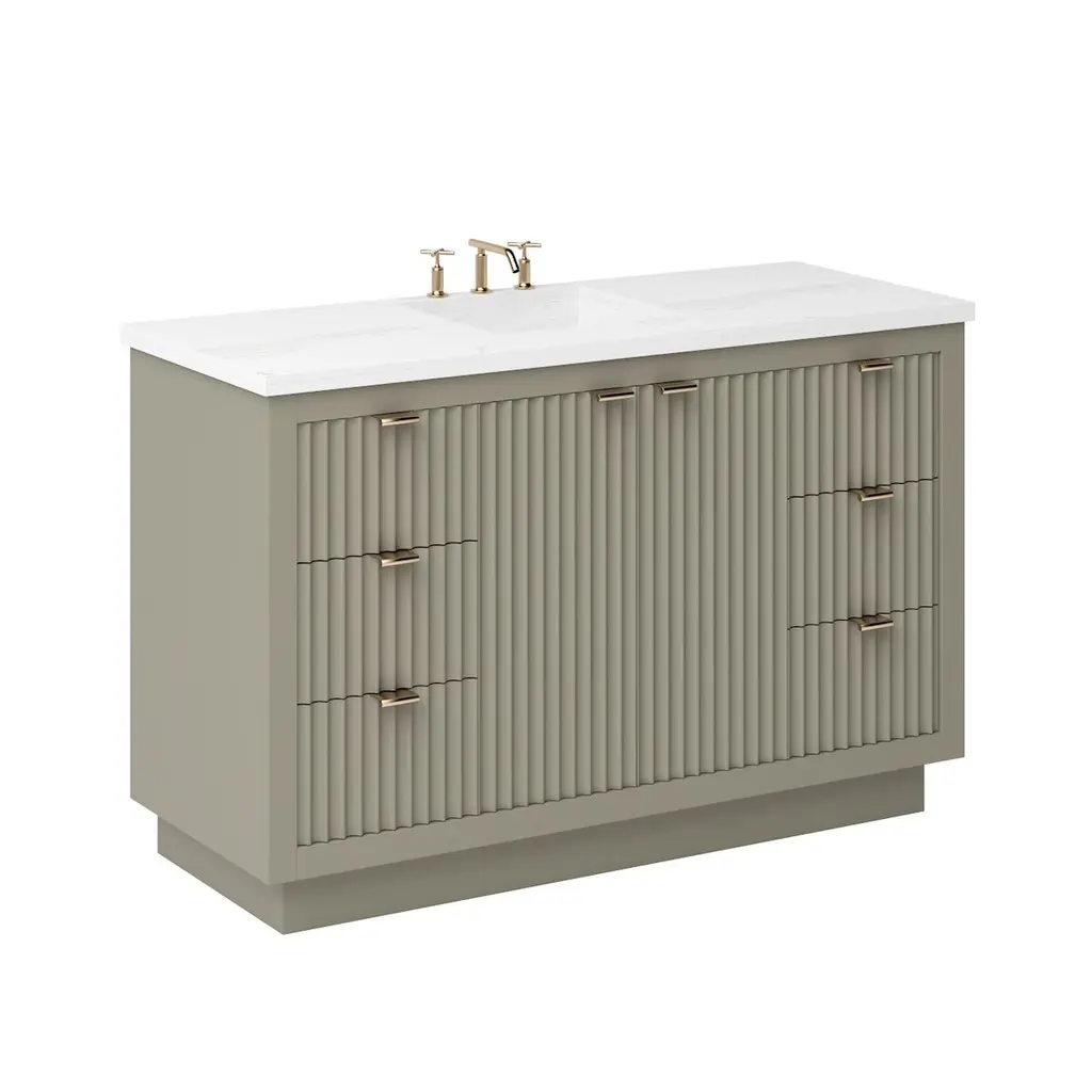 The Ashford Single Extra Wide Bathroom Vanity is a masterpiece of contemporary design, exuding a romantic charm that transforms any bathroom into a sanctuary of elegance. Its sleek scalloped details whisper sophistication, while the bold two-inch frame stands proudly, embracing the soft-close doors and drawers with a gentle embrace. This freestanding vanity is not just a piece of furniture; it's a statement of style and functionality, crafted to endure the test of time. Finished in a lustrous satin varnish, it offers a versatile allure, available in both single and double configurations to suit any space. The Ashford collection invites you to indulge in its timeless beauty, offering a variety of sizes to perfectly fit your needs. Let the Ashford vanity be the heart of your bathroom, where every glance is met with admiration and every touch speaks of quality.